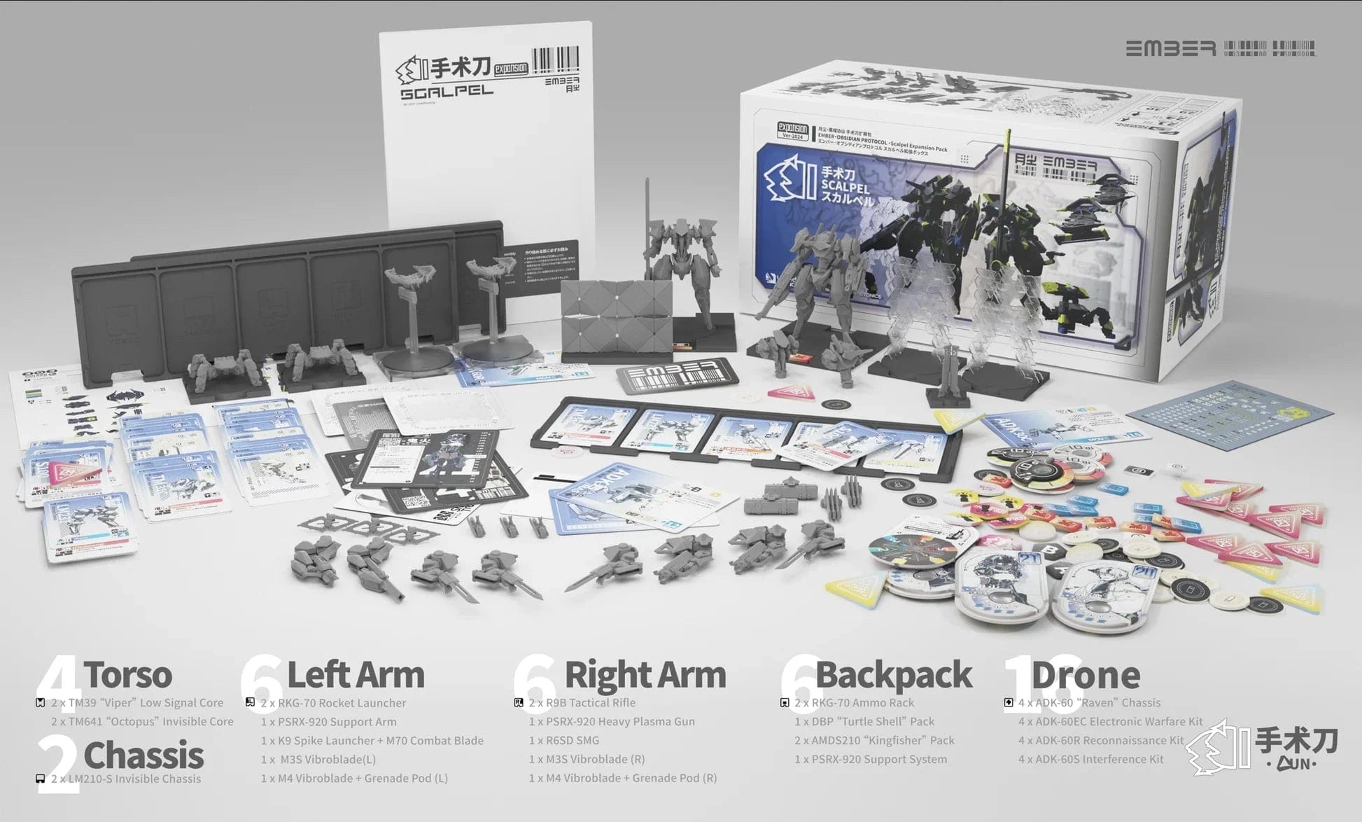 This set includes a range of units and parts from the UN faction, offering everything from optical camouflage to electronic warfare equipment and a full set of low-profile weapons, as well as a powerful cannon.