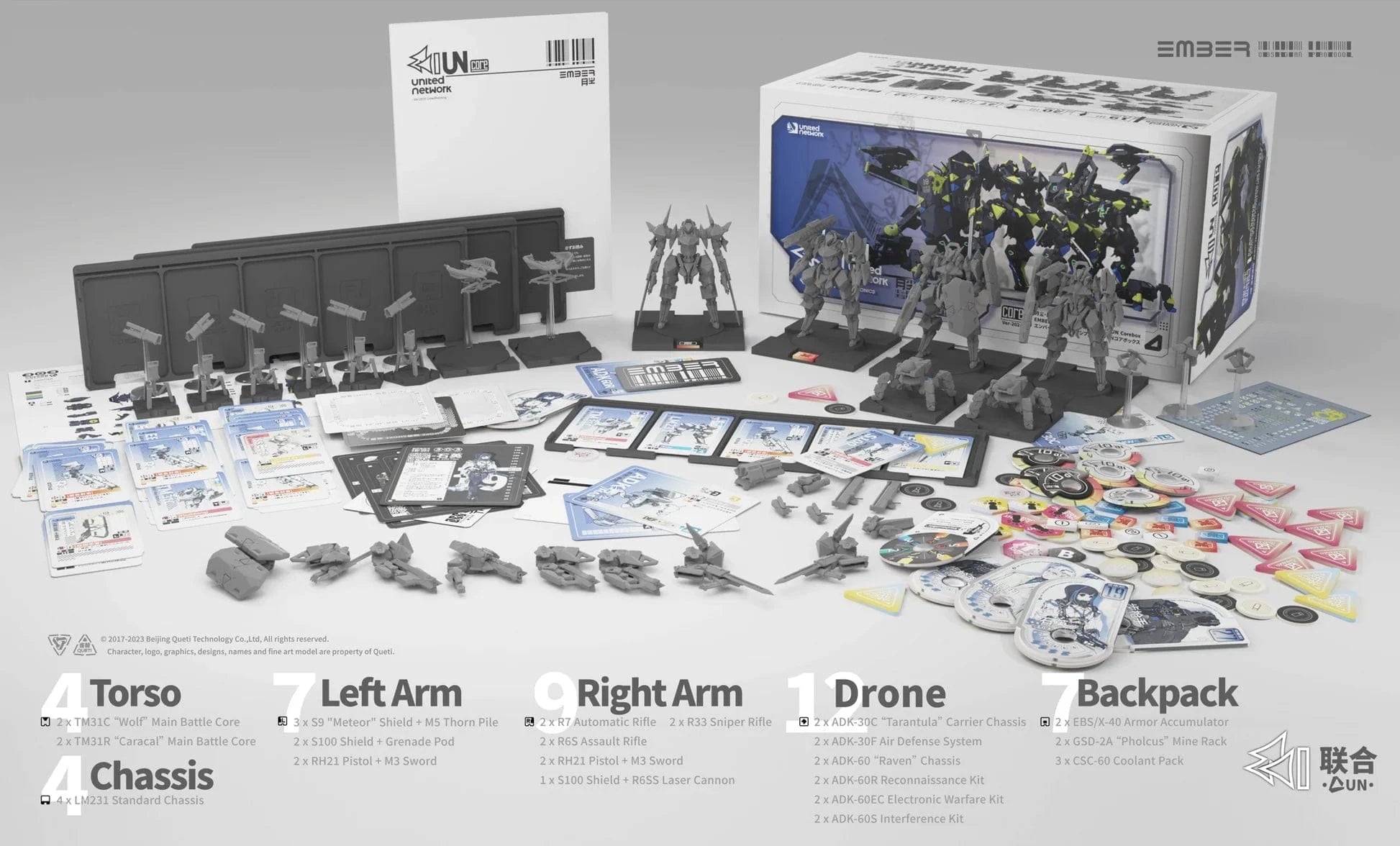 This set includes some of the most versatile units and components in the UN faction. You can quickly form a team consisting of up to 4 mechs and 4 drones, and start to experience the various weapon system and high maneuverability of UN factions.