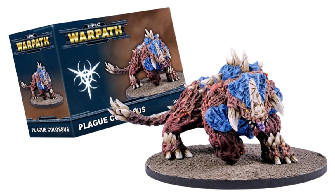 Standing nearly twenty-five metres tall and armoured with plating thicker than the walls of many fortified buildings, a Plague Colossus is practically unstoppable. Like the Plague itself, the creature is capable of simply crushing - or brushing aside - anything slow or unwise enough to get in its way. Contents: Resin EWP Colossus, MDF 80mm round Base