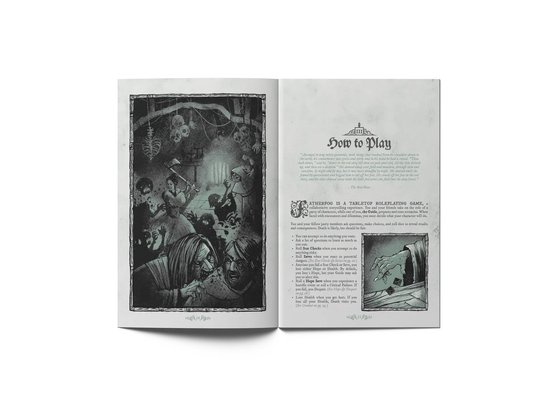 Welcome to Fatherfog, the fairytale horror RPG where you and your fellow party members try to survive in a world where fairy tales, as you know them, exist in their full horror. Cautionary folklore holds more truth than tale, and your knowledge of them may hurt your chances of survival as much as help.