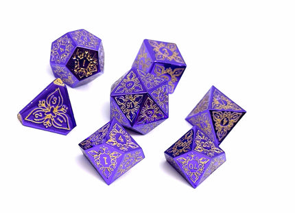 Embark on an adventure infused with intrigue and allure with the Feyweave - Midsummer Dice Set, where purple alloy and gold enamel fill merge to elevate your gaming experience. Roll the dice and let the essence of unity and artistry guide your destiny with every throw, immersed in the captivating radiance of Feyweave - Midsummer.