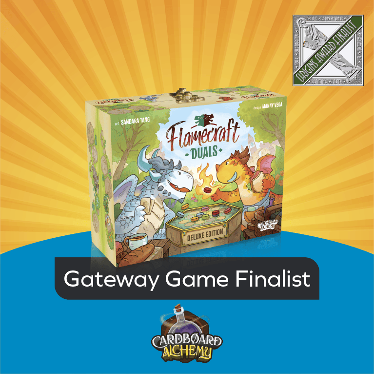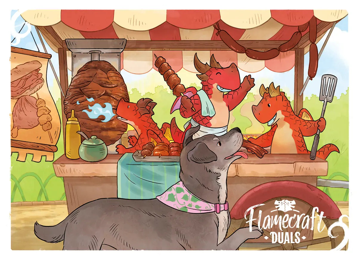 Ever wondered what the dragons of Flamecraft do on their lunch break? Play Flamecraft Duals, of course! Set in the world of Flamecraft, Duals is a two-player travel-friendly game of pattern-making and quick, puzzly fun! You will meet the artisan dragons again with new powers, and this time the challenge is to get your dragons in a row. As you draw dragons, you might get lucky and come across a rare dual-colored Hydragon, with double the artisanal skills! As you play, the board will fill up with adorable dragons, stacking and soaring across the table, and you will work to fire-up their abilities, make matches, and complete shop cards.