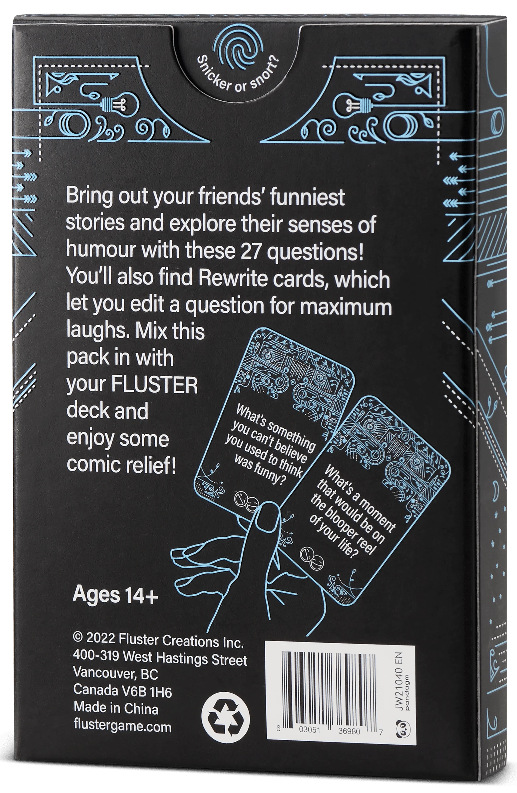 Fluster can get kind of heavy, which is why we made the Laugh Pack. This expansion pack brings some comic relief with questions about hilarious mishaps, bizarre thoughts, and the things that make us laugh (whether we want to or not).
