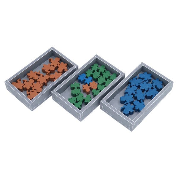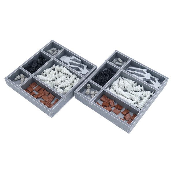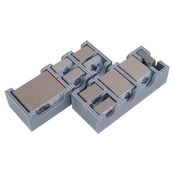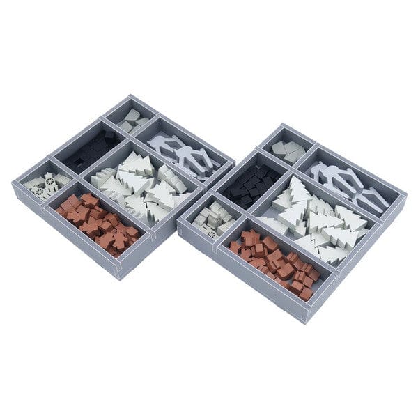 Insert compatible with Frostpunk® , including the Frostlander® expansion. The design provides both efficient storage and improved game play. Many of the trays can be utilised during the game, and they greatly aid set-up and clear-away times. The boards and rulebooks act as a lid on top of the trays.