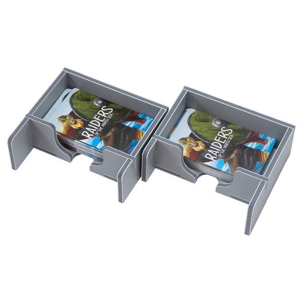 Insert compatible with Raiders of the North Sea® , including the Hall of Heroes® and Fields of Fame® expansions. The design provides both efficient storage and improved game play. Many of the trays can be utilised during the game, and they greatly aid set-up and clear-away times. The rules and boards act as a lid on top of the trays.