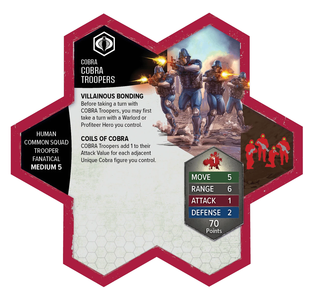 - Dominate the battlefield with COBRA Troopers who empower their commanders with Villainous Bonding.