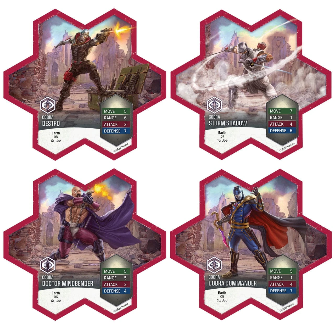 This expansion includes one Common Hero, one 4-figure Common Squad, and two Army Cards. The Greenshirts coordinate with nearby G.I. JOE and Soldier Heroes, moving them into position before unleashing their own attacks. Above the battlefield, the Battle Copter swoops in with a devastating Strafe Special Attack that spares friendly forces, ready to take command at a moment’s notice. Together, these common troops and airborne support units deliver new tactical flexibility to your Heroscape armies.