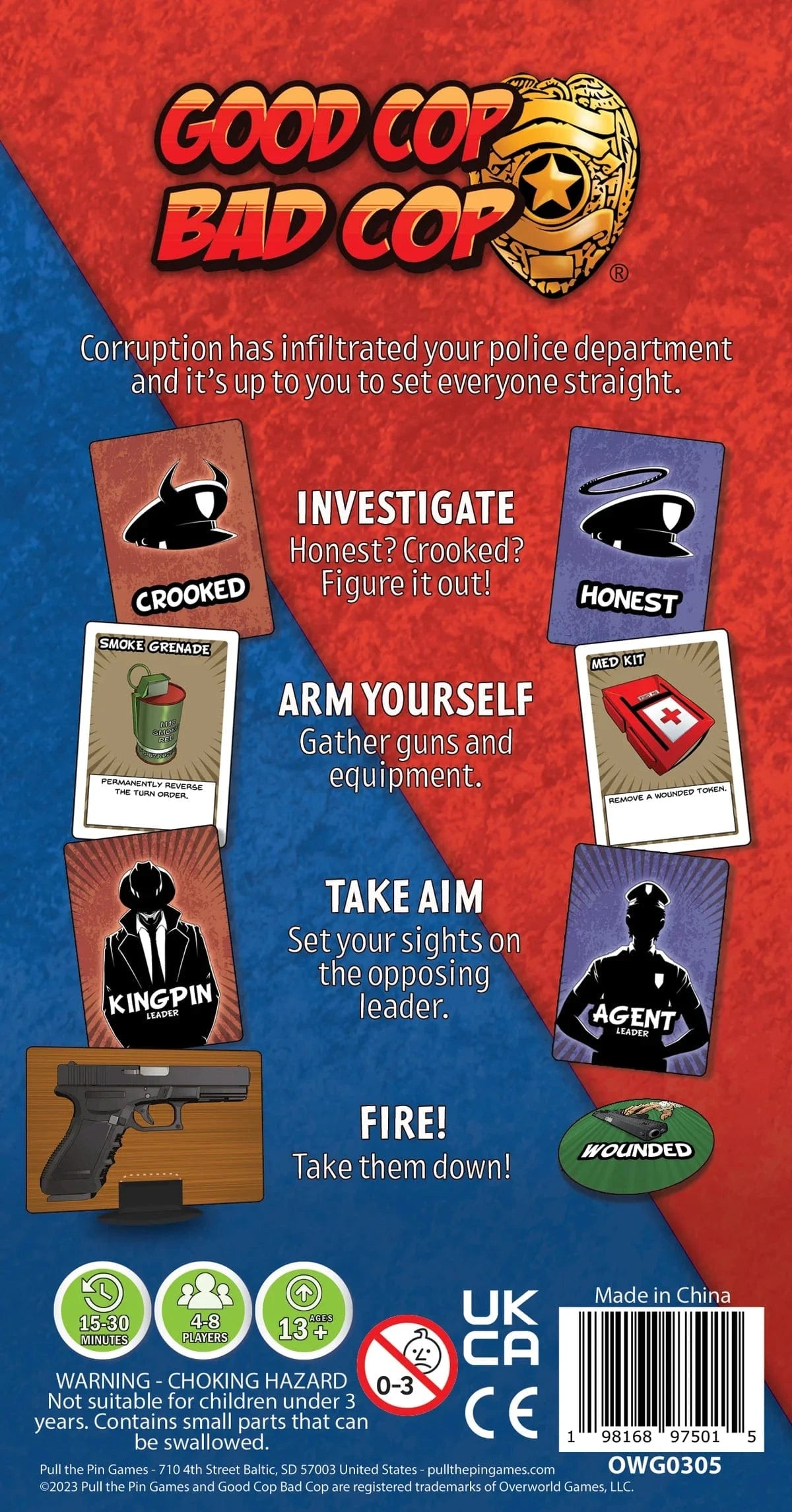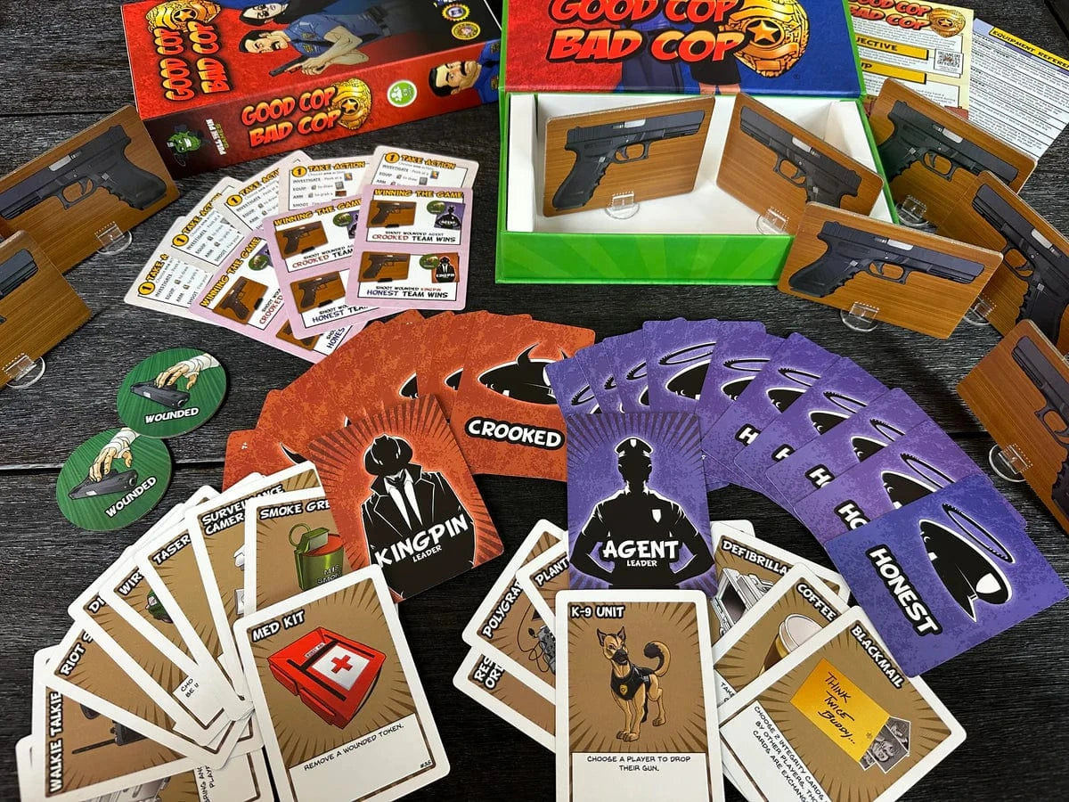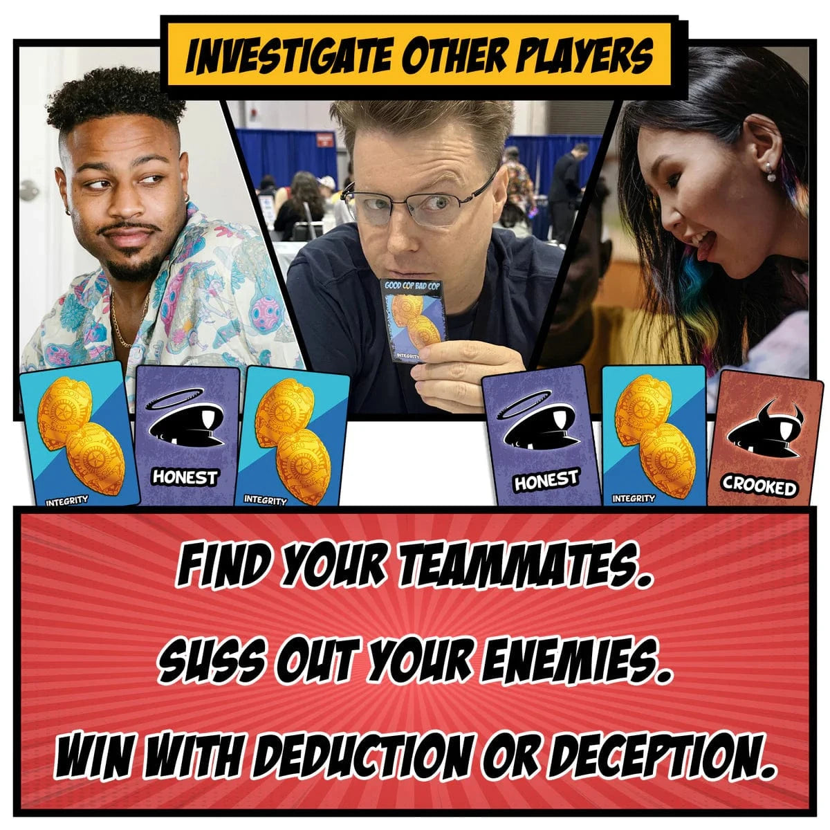 Take a look around the table to figure out if your fellow cops are Honest or Crooked so you know if they are on your team or against you. Grab a gun or equipment and work with your team to take down the opposing leader!