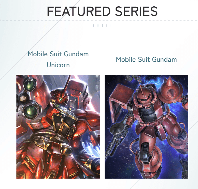 Zeon’s Rush [ST03] An aggressive Red and Green deck with Zeon and Neo-Zeon characters from Mobile Suit Gundam and Gundam Unicorn. Featuring Full Frontal/Sinanju and Char Aznable/Char’s Zaku II.