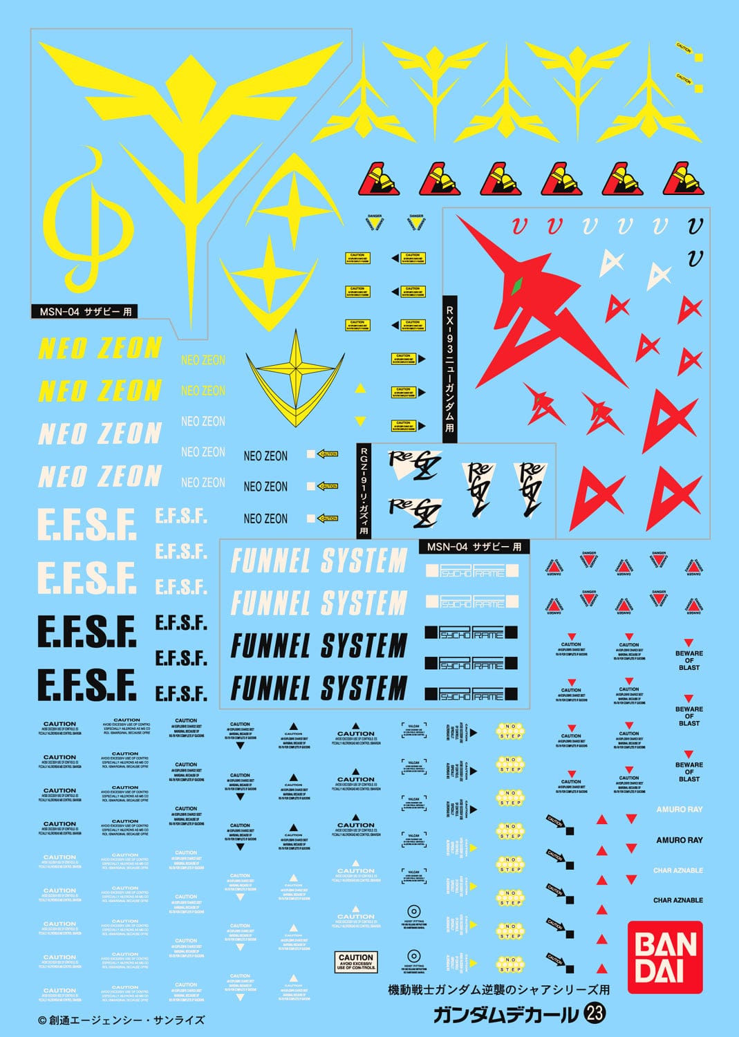 Gundam Multiuse Water decals by Bandai open up detail options to any build. Gundam decals are designed to enhance the visuals of any model kit. Update your grunt suits with squad numbers or add a warning sign near a hatch or thruster. No instructions are necessary. Gundam Multi-use decals are made for you to decide.