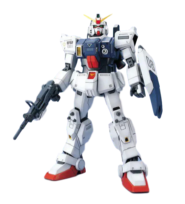 The Ground Gundam from the popular 8th MS Team Gundam OVA features machine gun, beam rifle, bazooka, beam sabers, and container storage unit.