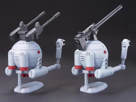 This model kit, based on the appearance in Mobile Suit Gundam, is a twin set of RB-79 Ball support mobile-pods. With plenty of articulation and included bases, these twin Ball pods would make a great addition to your Gundam display!