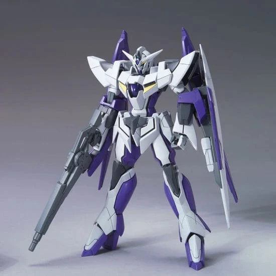 Here in 1/144 scale glory is Leif Recitativo's 1.5 Gundam! For an HG Bandai has used a generous amount of poly caps in the design of this kit and the result is one of the most posable HGs ever. The 1.5 transforms between Stand By Mode, Attack Mode, Flight Mode, Alvaaron Cannon Mode,and High Speed Mode with a few simple changes thanks to the uniquely designed binders joints on its back. it comes equipped with its GN Beam Saber, GN Shield, Binder Rifle, GN Buster Rifle, and Alvaaron Cannon. Marking stickers are also included.