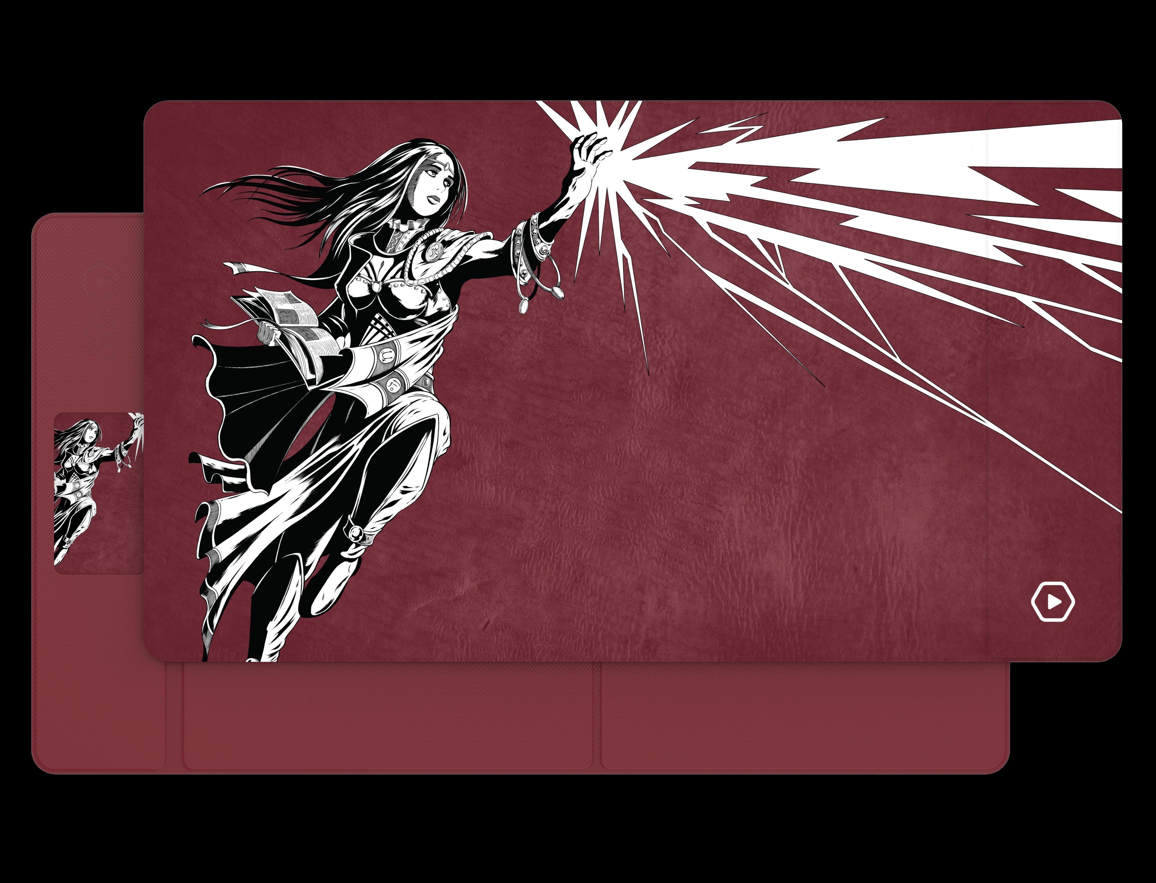ETB PLAYMAT ART MASTERS: Our revolutionary playmat, now with original artwork from renowned gaming artists. Limited edition runs of 500 pieces with a chance to open a serialized unit (50 pieces). Original Commissioned Artwork. Limited Print Runs (500 pieces). Rare Serialized Units (50 pieces). Unique Exterior Preview Swatch. Quick-Fold Rigid Panel Design. Fits into 15" Laptop Sleeves. Secure Magnetic Closure. Anti-Slip PU Exterior. EquipMAG Modular System. Attach an RFG Deckbox and an RNG Dicebox. First collection by Phil Stone.