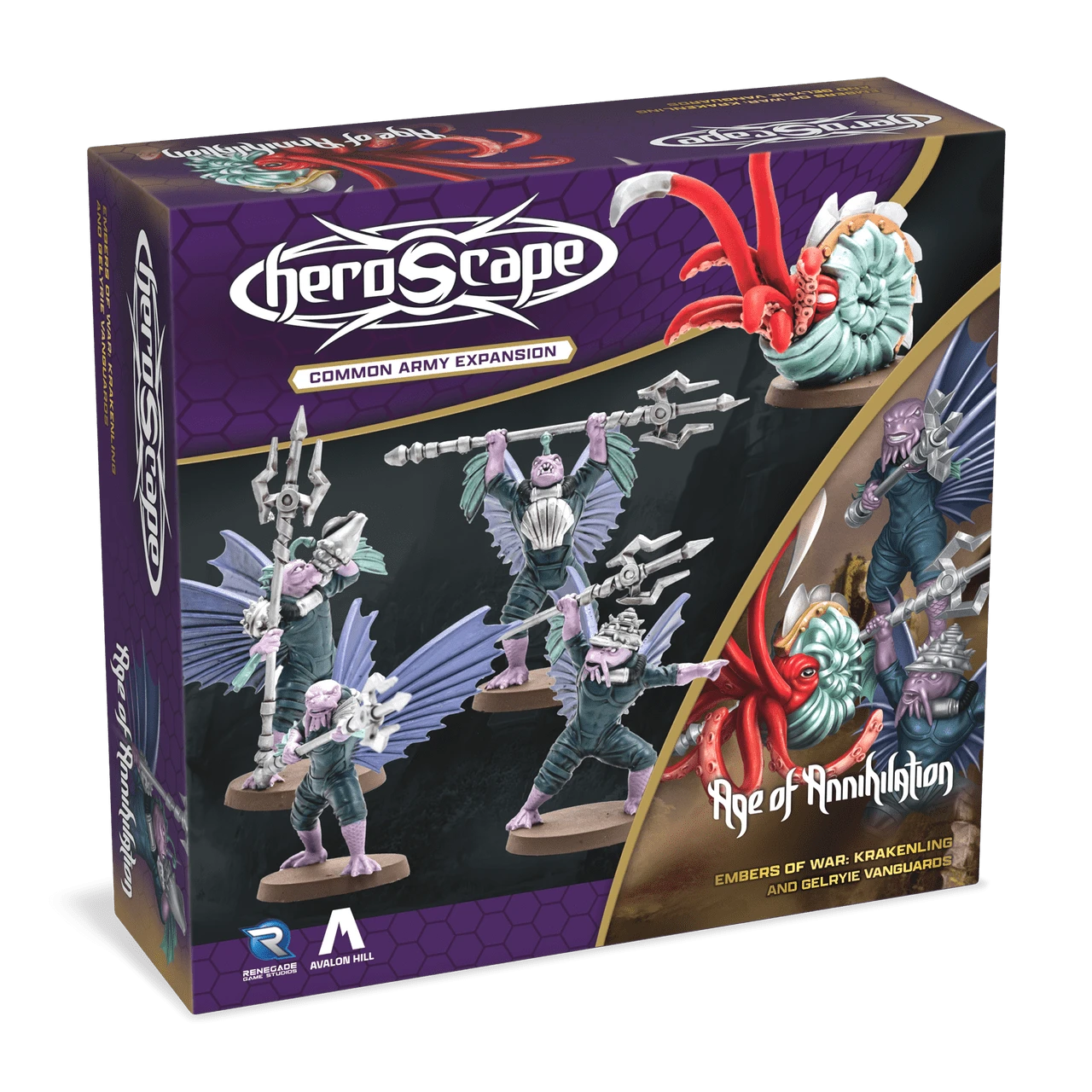 This common army expansion contains one 4-figure common squad and one common hero players can use to customize their armies! The Gelryie Vanguards rise with the tide and can surge forward and strike without warning with Tidal Advance. The Krakenling can teleport across the battlefield, swap places with enemies, and unleash multiple attacks upon your foes. Unleash these aquatic forces upon your enemies!