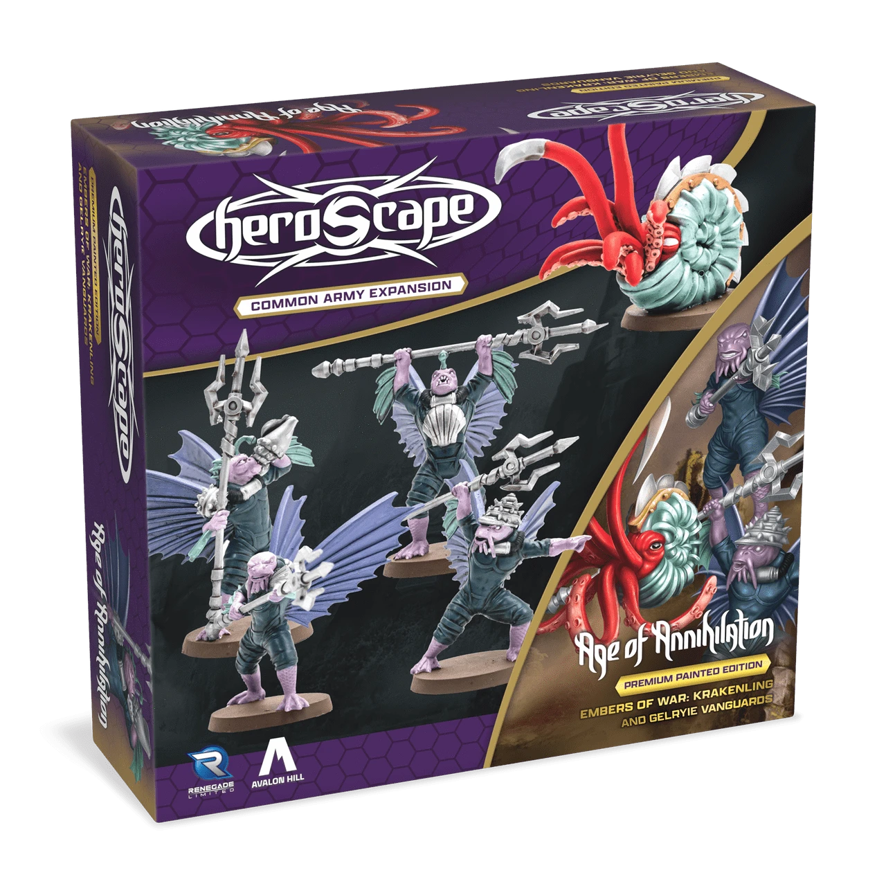 This common army expansion contains one 4-figure common squad and one common hero players can use to customize their armies! The Gelryie Vanguards rise with the tide and can surge forward and strike without warning with Tidal Advance. The Krakenling can teleport across the battlefield, swap places with enemies, and unleash multiple attacks upon your foes. Unleash these aquatic forces upon your enemies!