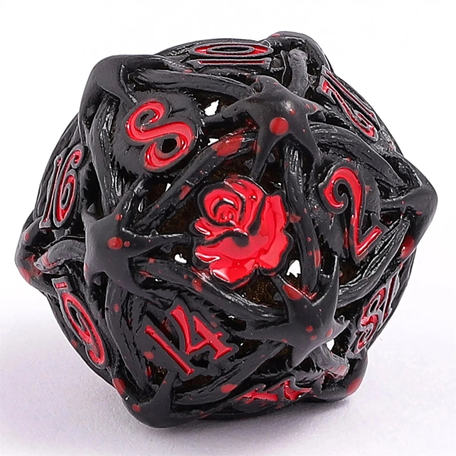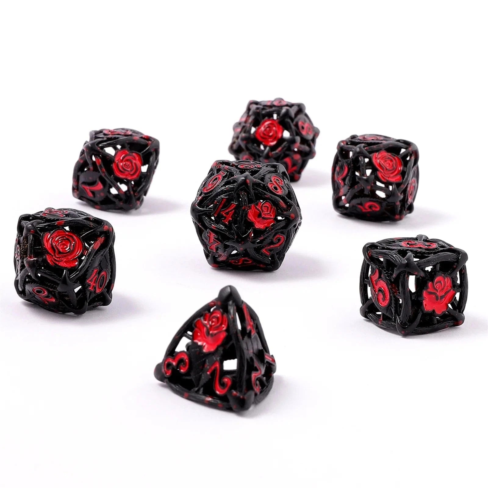 HY00536: Hollow Rose Polyhedral Metal Dice Set - Black w/Blood Spatter