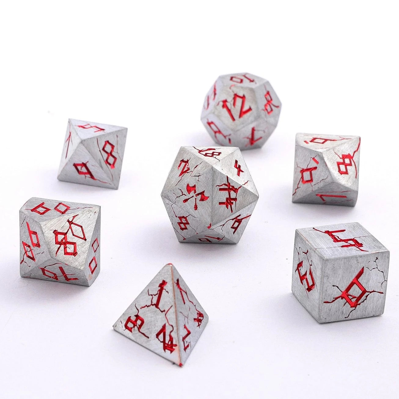 HY00356: Barbarian Solid Metal Polyhedral Dice Set - Matte Silver Red
