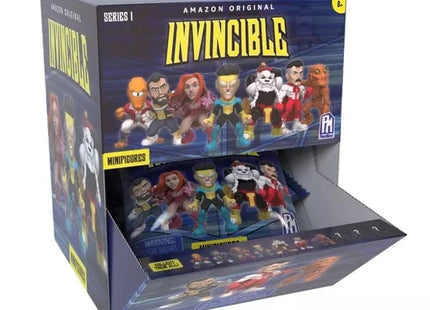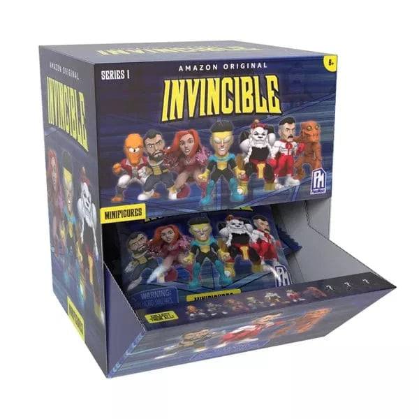 Prepare to take flight with the Invincible Minifigure Collection! The Series 1, minifigure assortment includes all your favorite heroes, villains, and antiheroes from the hit animated series including: Invincible, Omni Man, The Immortal, Atom Eve, Battle Beast, Allen the Alien, and Robot, along with 3 mighty, rare, chase figures. With the mysterious blind bag, you never know who you’re going to get: a hero, a villain, or something in between. Bring home Invincible Minifigures today - if you’re strong enough!