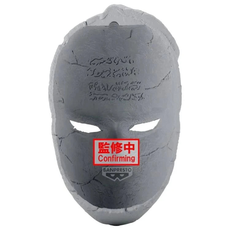 This highly detailed Stone Mask replica from JoJo's Bizarre Adventure: Phantom Blood stands approximately 7.5 inches (19 cm) tall and is crafted from durable plastic. Faithfully reproducing the iconic mask seen in the anime, it comes with a base for easy display. A perfect addition for collectors and fans of the series, this piece captures the essence of the franchise's dramatic storyline and artistic design.
