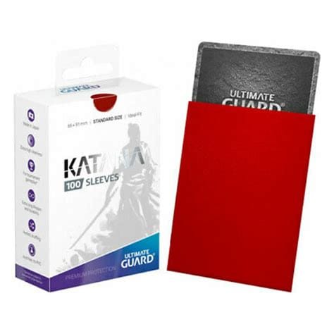 With the Ultimate Guard Katana Sleeves you protect your cards like a Samurai! The top sleeves made of Japanese precision manufacturing are completely opaque, especially durable, and meet the highest demands of players and collectors! 100 cases to protect standard sized collectors cards - Made in Japan - Ultra transparent front - Fully opaque back - Ideal for tournament use * - Optimal mixing - Extra long playability and durability - Acid free, no PVC - Case size: 66 x 91 mm * The cases require approval of the tournament line.
