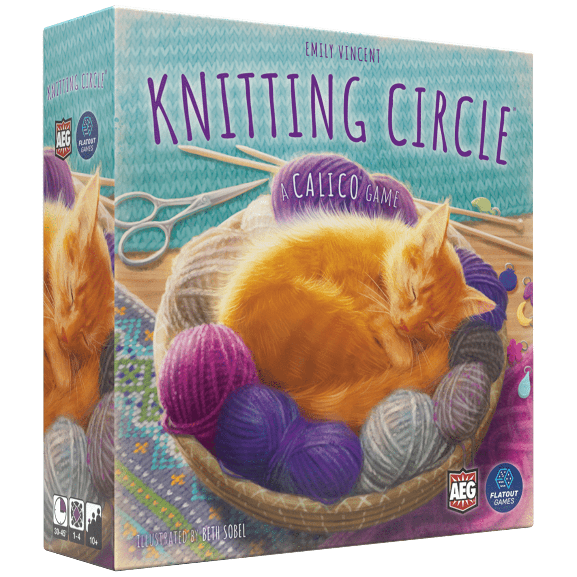 Knitting Circle™ is a stand-alone follow up to the hit spatial puzzle game Calico™! In this gorgeous puzzly tile-laying game for the whole family, players are knitters competing to create the coziest, most beautiful assortment of garments. Rounds are simple - collect yarn from the central basket and knit it into garments while trying to get your color combinations and patterns just right! Earn victory points by completing garments, adding buttons, and fulfilling bonus scoring goals. Along the way, your furry feline friend can help you out by reaching their grabby paws into the bag to secure you the best yarn! With variable scoring goals, and dozens of unique template cards, each game of Knitting Circle brings a new spatial puzzle to your table!