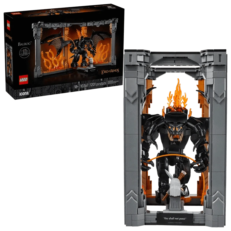 • What’s in the box⁠ – Includes all you need to build the LEGO® Icons The Lord of the Rings: Balrog™ Book Nook, a Balrog figure with a fiery whip and a Gandalf the Grey™ minifigure with a staff and sword