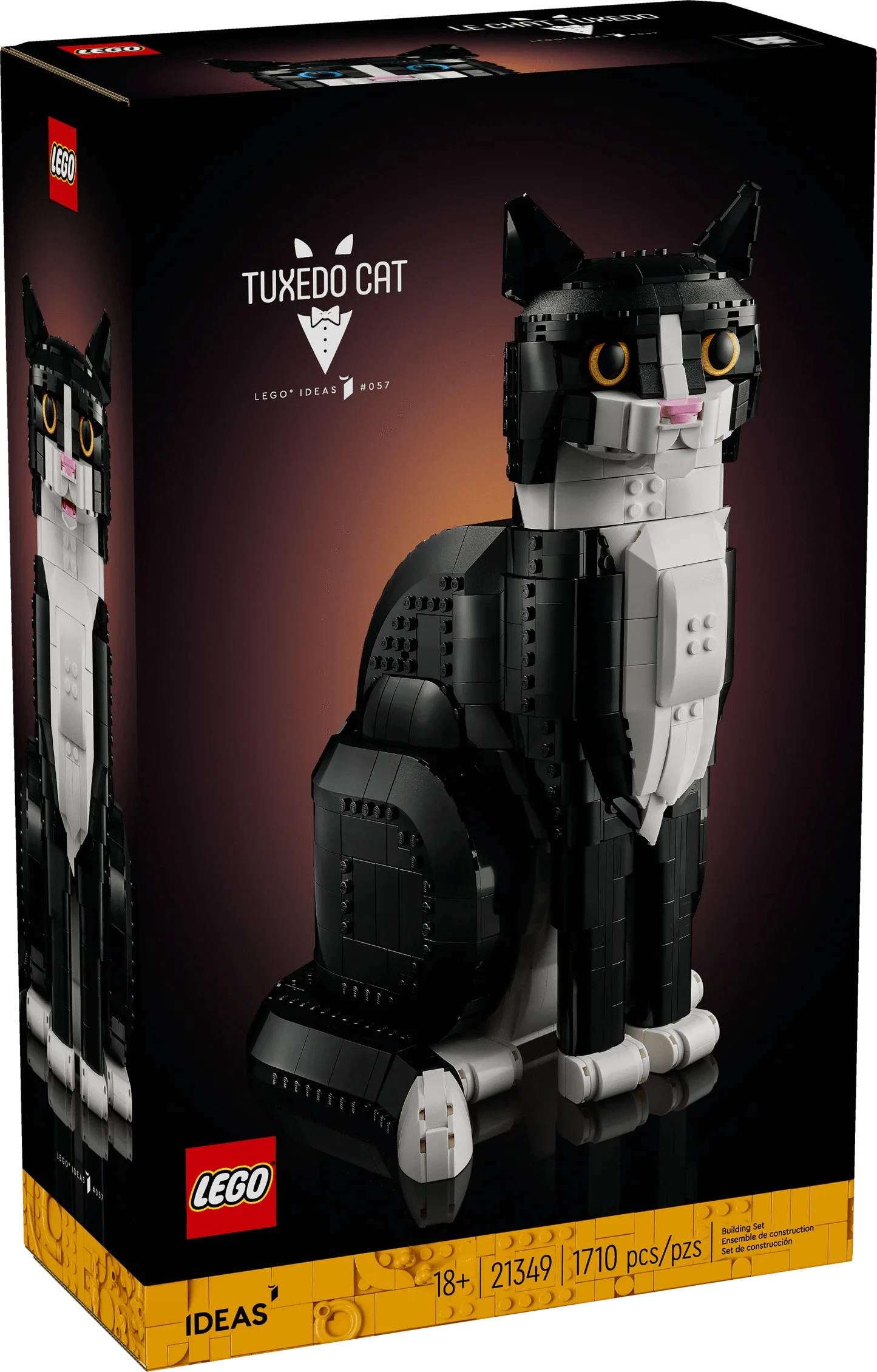 This LEGO® Ideas Tuxedo Cat building set for adults (21349). The purr-fect treat for yourself or a cat gift idea for a friend who loves animals, nature or design, this lifelike (and allergy-friendly!) black-and-white cat model comes with a choice of yellow or blue eyes. Build and easily rebuild the cat with an open or closed mouth, rotate its head and adjust the ears, paws and tail for different playful poses.
