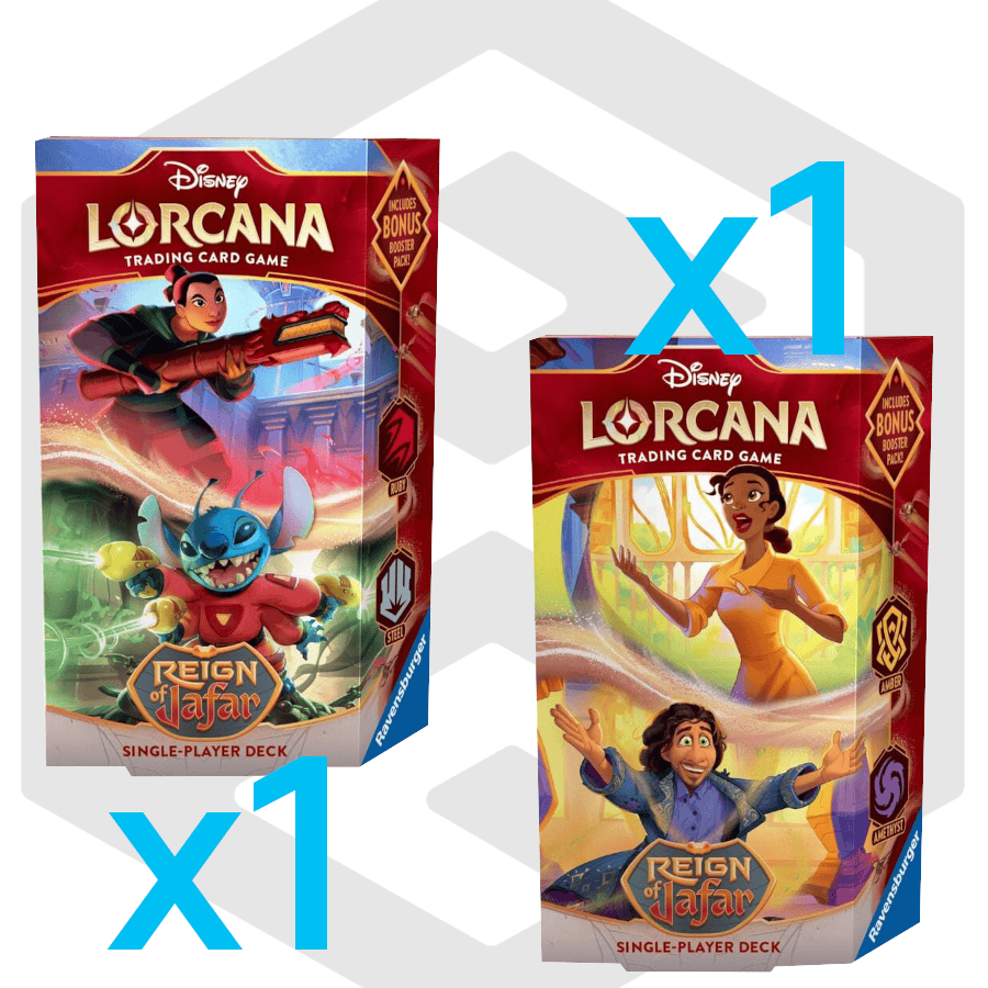 Dive into the magical world of Disney's Lorcana with the Reign of Jafar Starter Deck Bundle. This complete package gives you everything needed to begin your trading card game journey, featuring powerful cards from the villainous Jafar storyline. Perfect for newcomers and collectors alike, the bundle includes pre-constructed decks designed for immediate gameplay and strategic depth. Build your collection, master the game mechanics, and challenge friends with cards that bring Disney's most iconic characters to life. Start your Lorcana adventure today and experience the enchantment of competitive card gaming.