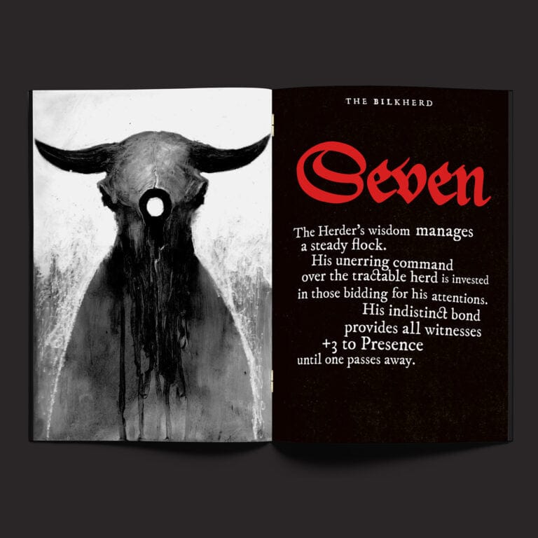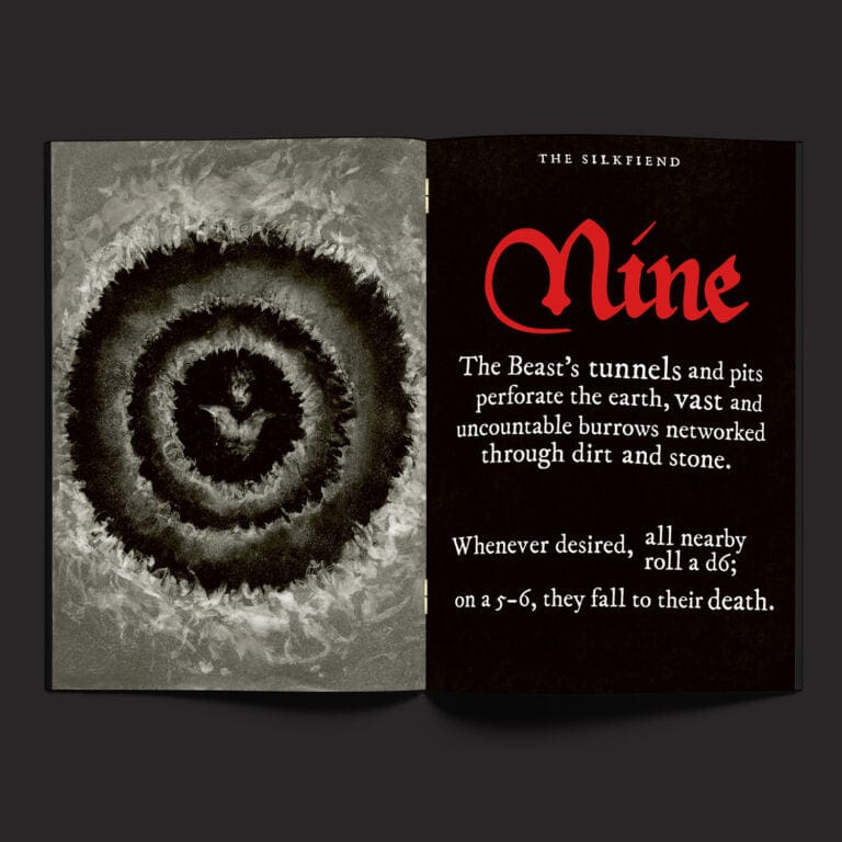 IKHON is a mystery box for MÖRK BORG. A gaol keeping four almost-forgotten folk gods at bay; the Bilkherd, the Becklure, the Old Dead and the dreaded Silkfiend. Those who dare commune with them are promised great rewards. But life and death go hand in hand and too small a sacrifice could be perceived as an insult. This gift could very well be a curse. Contents: