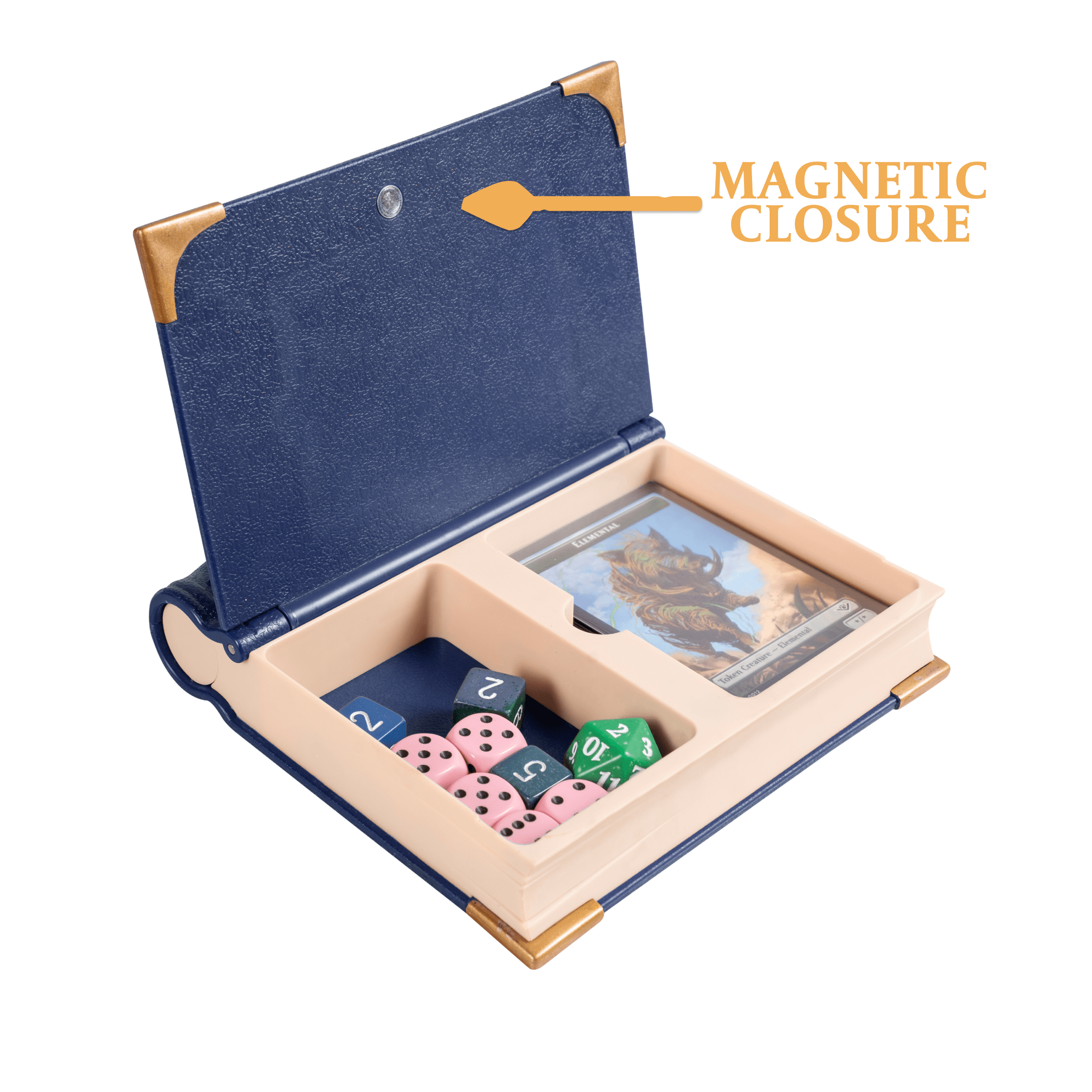 The MTG Commander's Codex is a book-shaped command zone designed to track every crucial game element, including life totals, commander casts, and commander damage—all in one sleek, immersive accessory. Featuring click-to-position number dials, a dedicated commander slot, and a hidden storage compartment for dice and up to 30 tokens, the Codex enhances organization while keeping gameplay smooth and uninterrupted.
