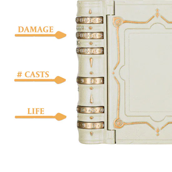The MTG Commander's Codex is a book-shaped command zone designed to track every crucial game element, including life totals, commander casts, and commander damage—all in one sleek, immersive accessory. Featuring click-to-position number dials, a dedicated commander slot, and a hidden storage compartment for dice and up to 30 tokens, the Codex enhances organization while keeping gameplay smooth and uninterrupted.