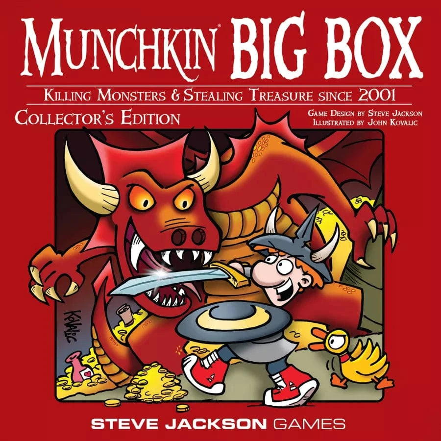 You might have heard of this one! We are so excited to be able to offer it to you now. It's a big, big, Big Box. Inside, you’ll find a pile of classic cards, as well as many all-new cards never before seen in the dungeon. All of the art is by our original Munchkin artist, John Kovalic. John even reimagined the cards that were initially drawn by other artists! In addition to the more than 700 cards, there are two new boards, wooden meeples, stickers, an enamel Spyke pin, and so much more.