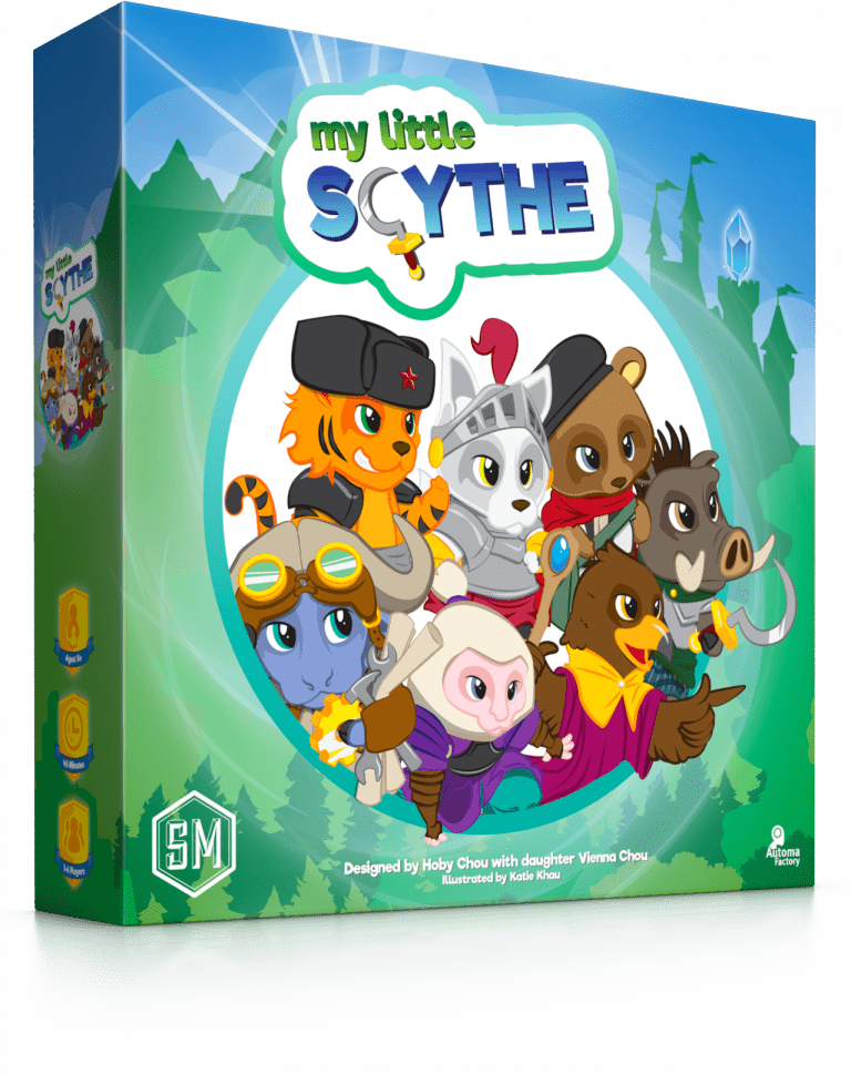 My Little Scythe is a competitive, family-friendly game in which each player controls 2 animal miniatures embarking upon an adventure in the Kingdom of Pomme.