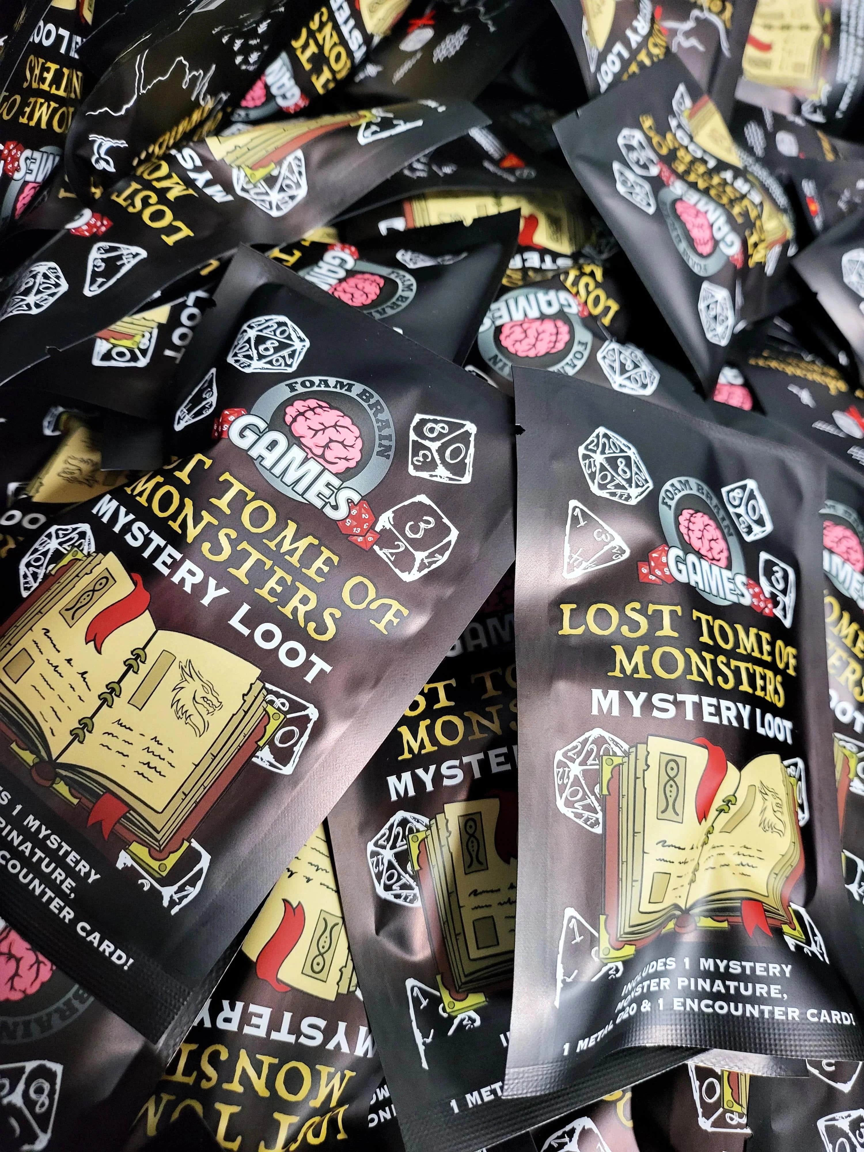 Foam Brain Games is excited to be back with our latest Mystery Loot, Lost Tome of Monsters. Each loot contains matching items themed around a specific monster!
