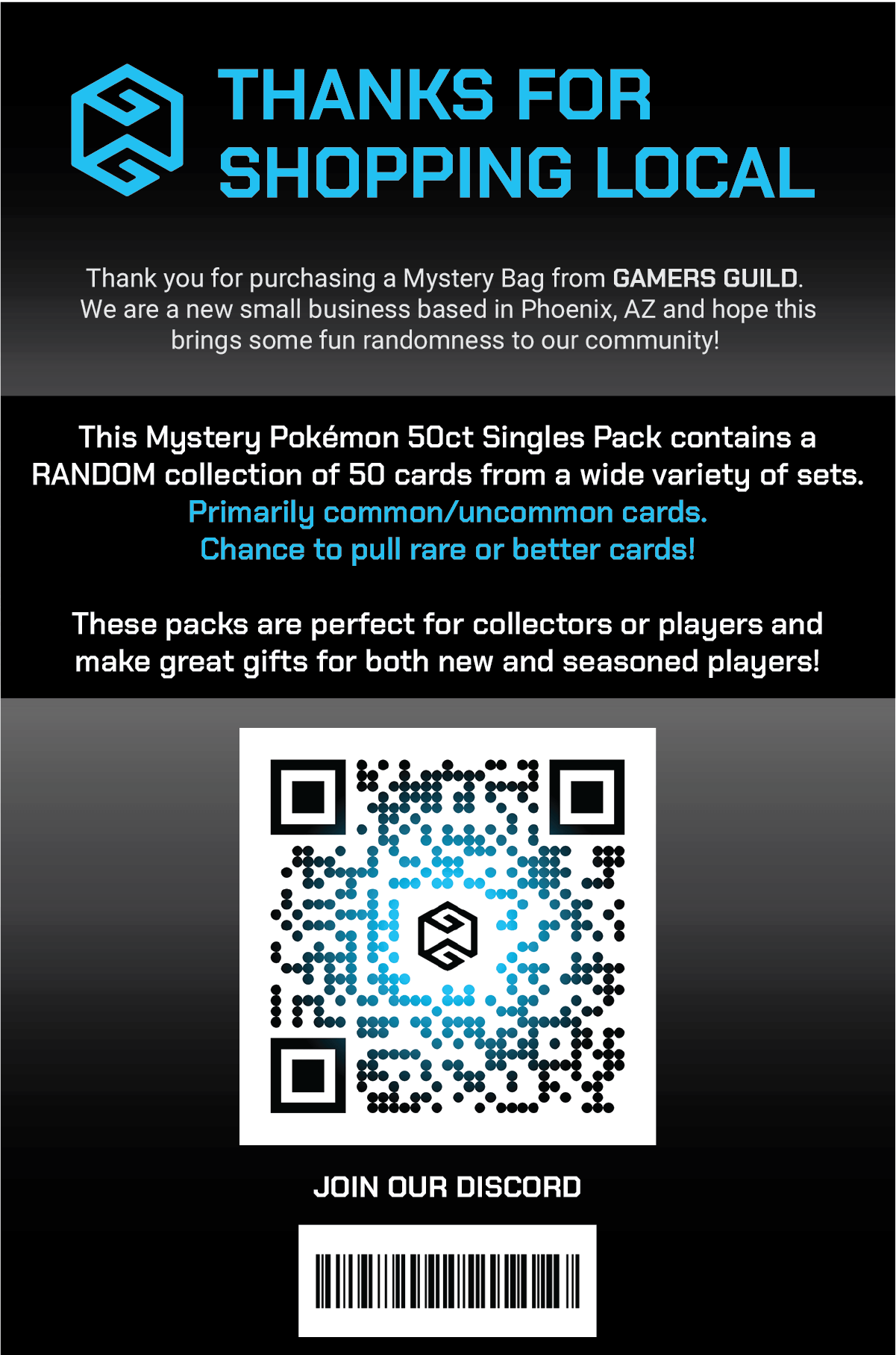 This Mystery Pokémon TCG 50ct Singles Pack contains a RANDOM collection of 50 Pokémon TCG cards from a wide variety of sets.