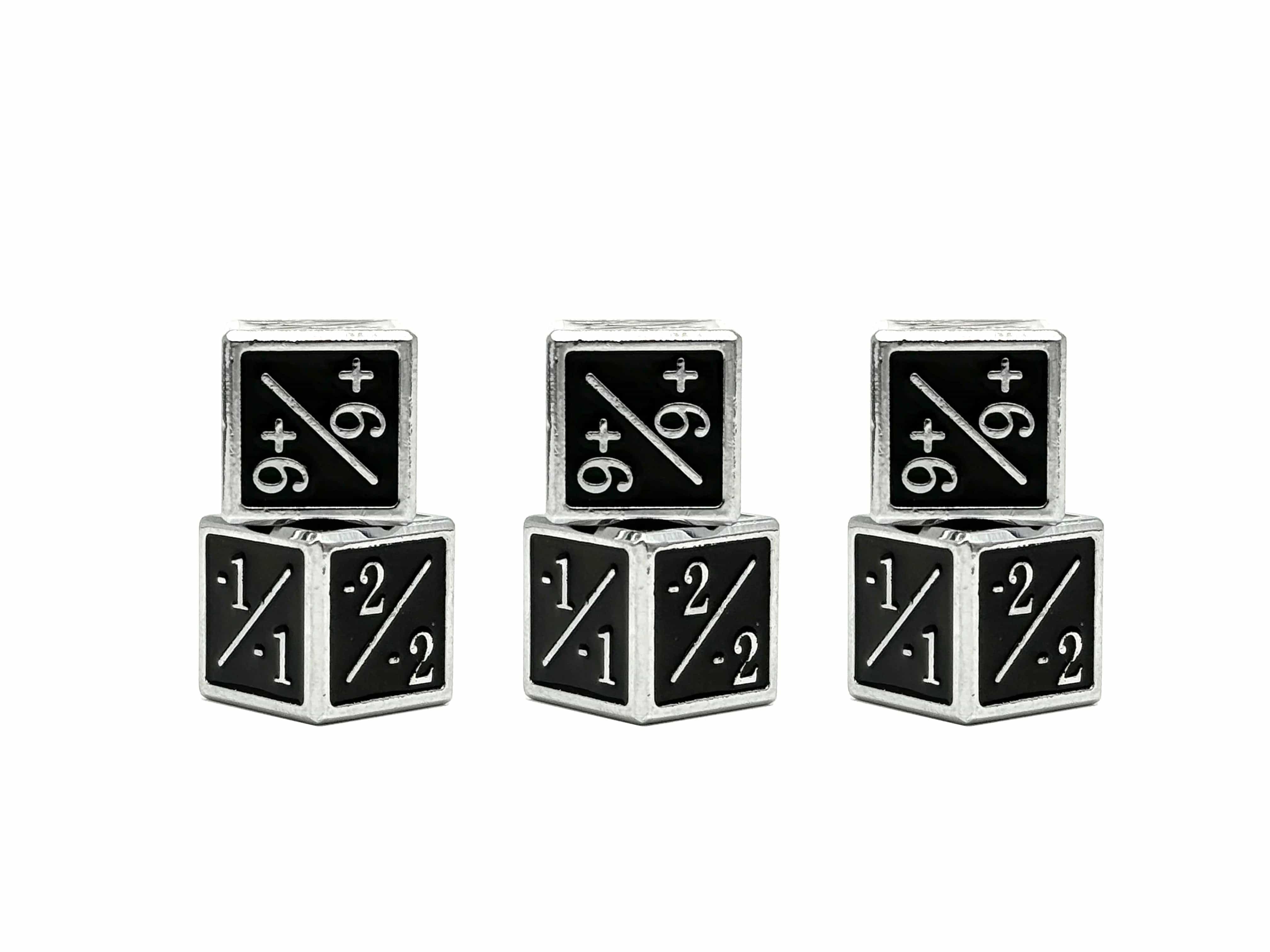 Unleash the power of precision with the +/- D6 Black from Norse Foundry. This set includes six high-quality, alloy-crafted dice, each designed with a bold black finish that combines sleek style with outstanding durability. Featuring easy-to-read, engraved +/- symbols, these dice are perfect for games requiring precise calculations and modifiers.