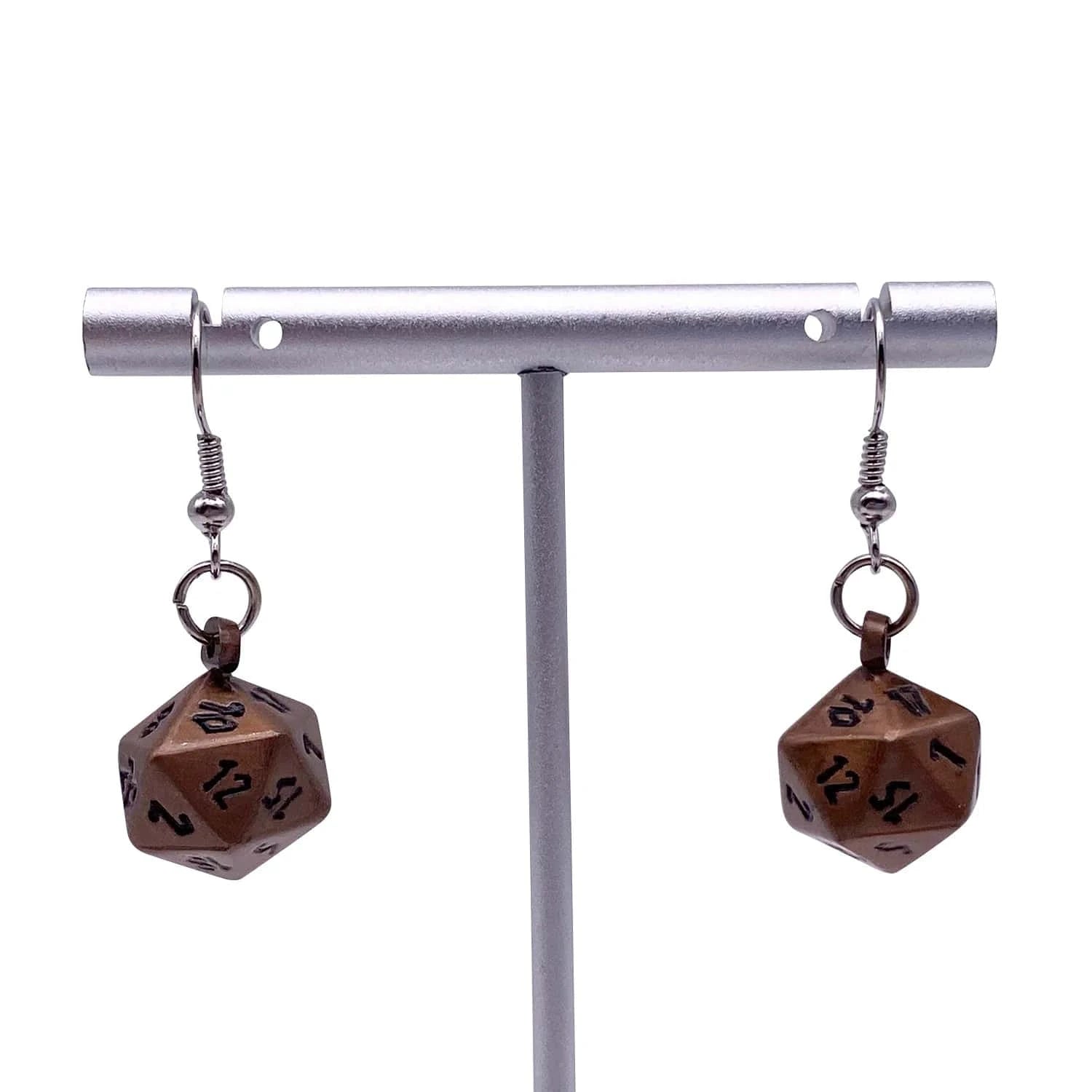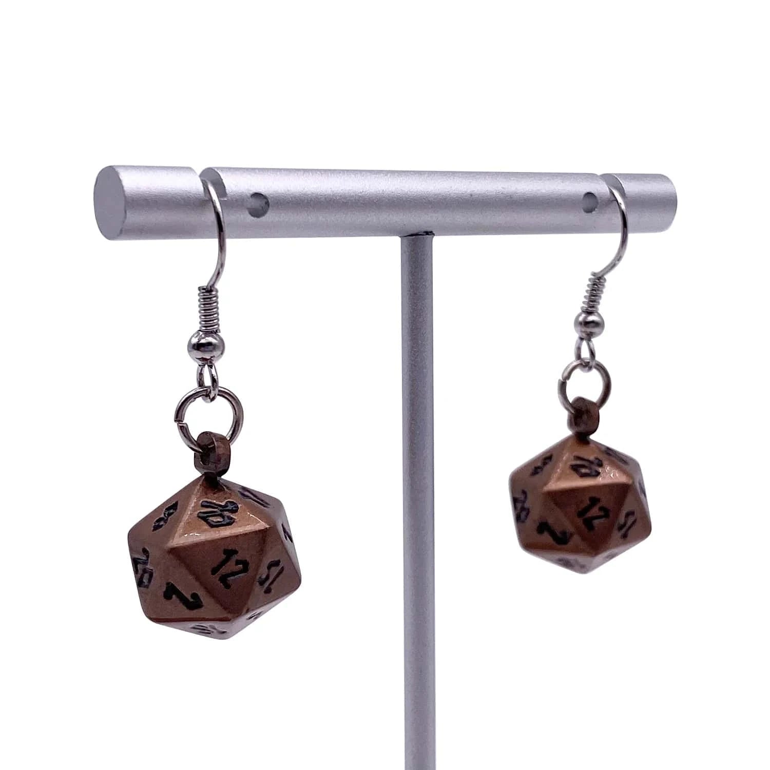 Norse Foundry Earrings - Gnomish Copper - Ioun Stone D20 Dice Earrings