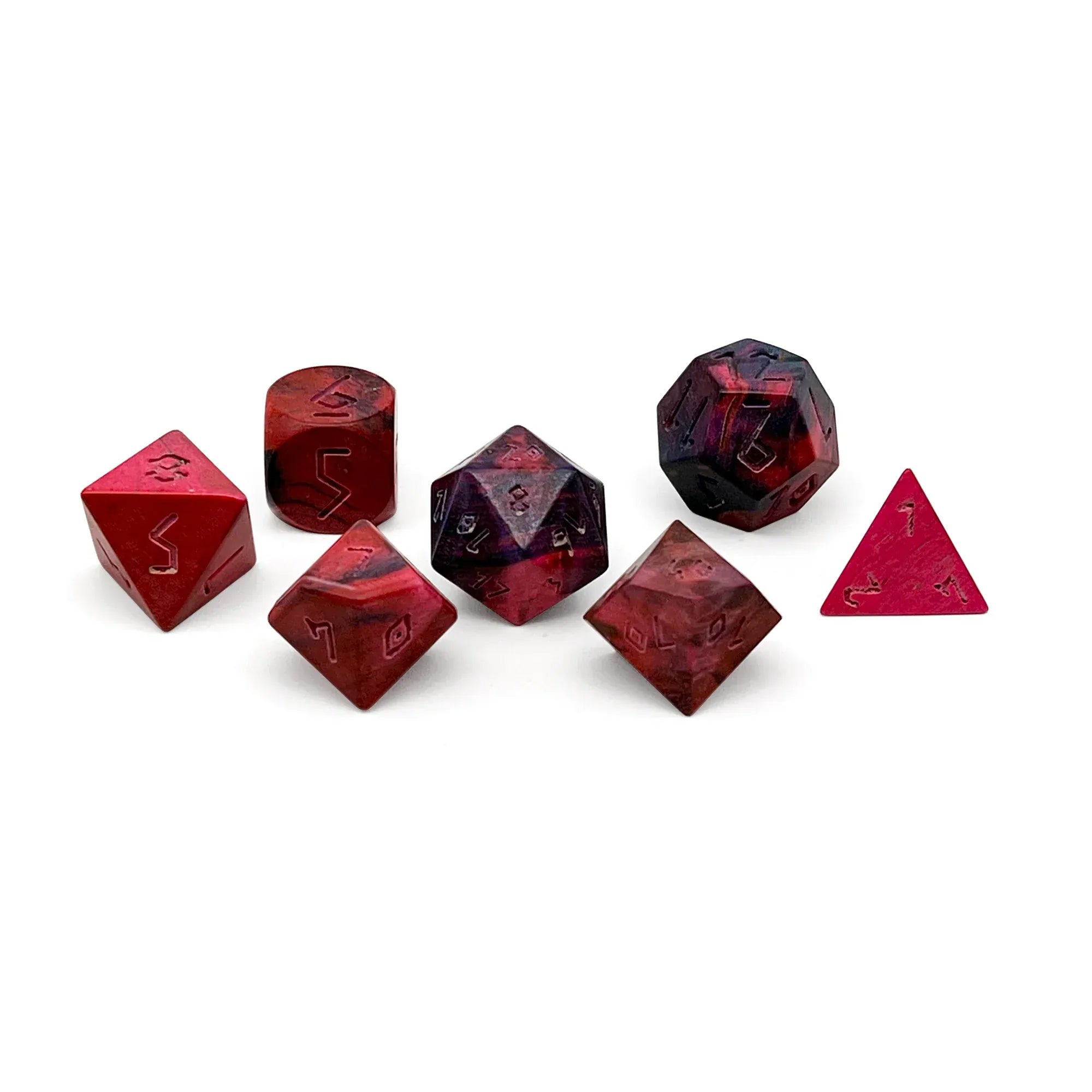 7-Piece Set. Set includes 7 polyhedral dice (d20, d12, 2x d10 (00-90 and 0-9), d8, d6, and d4)