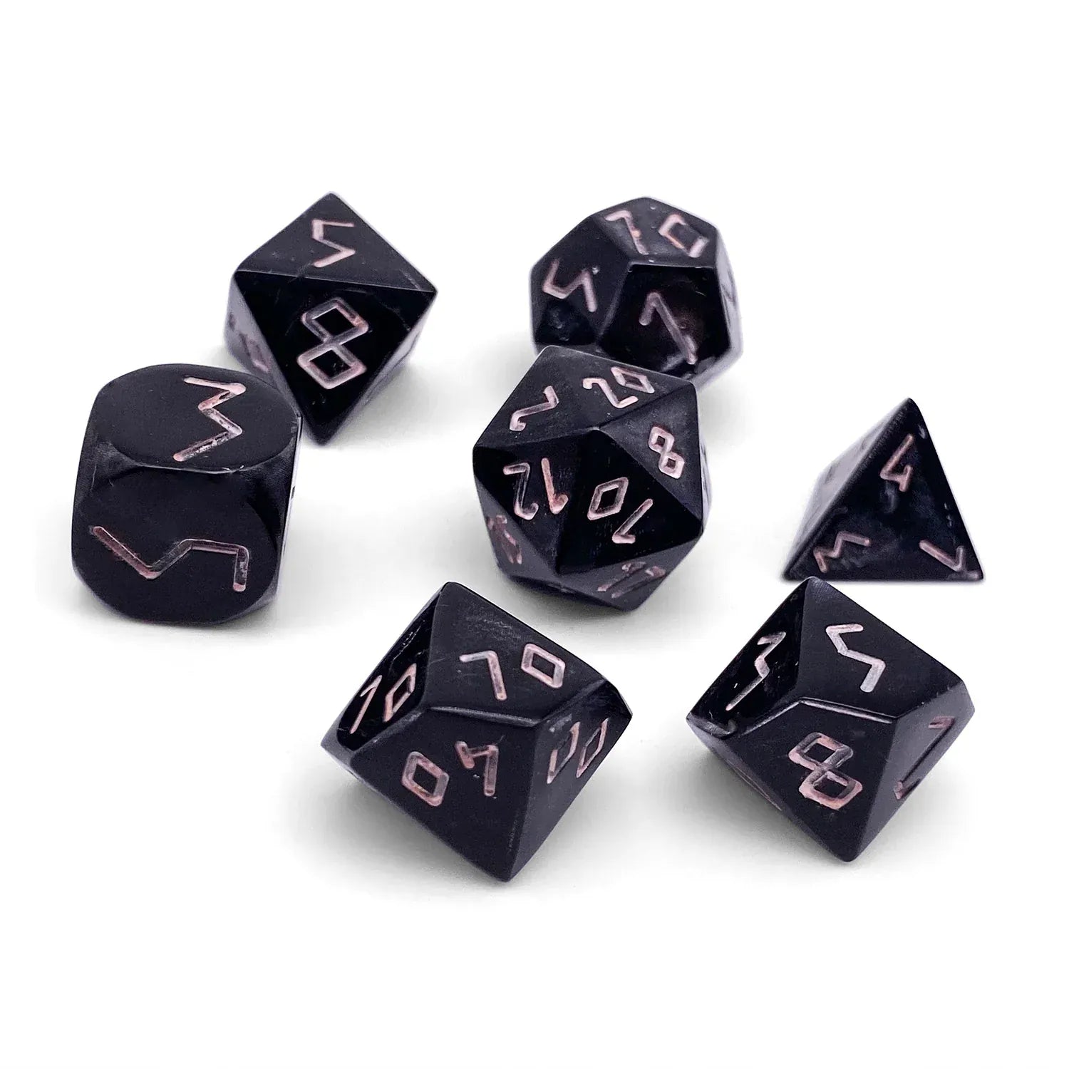 7-Piece Set. Set includes 7 polyhedral dice (d20, d12, 2x d10 (00-90 and 0-9), d8, d6, and d4)