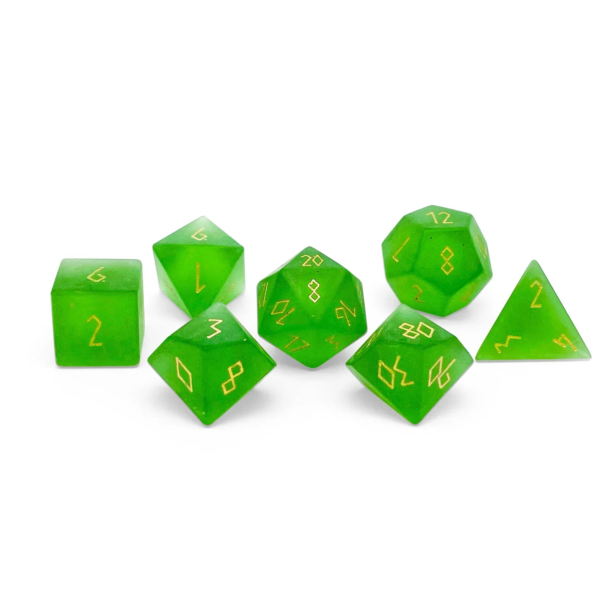 Norse Foundry: Zircon Glass Dice - Frosted Emerald Gold (7pc Set)