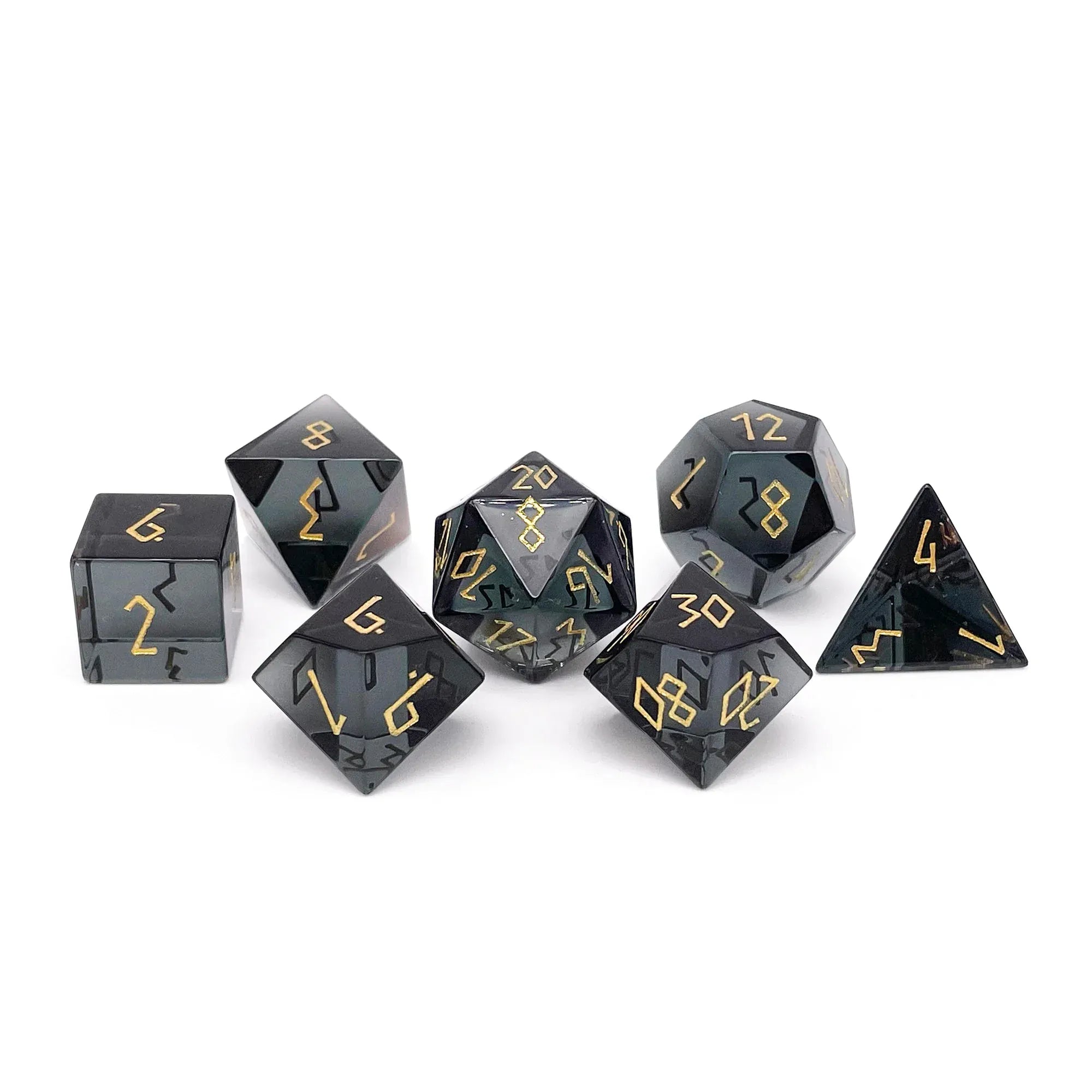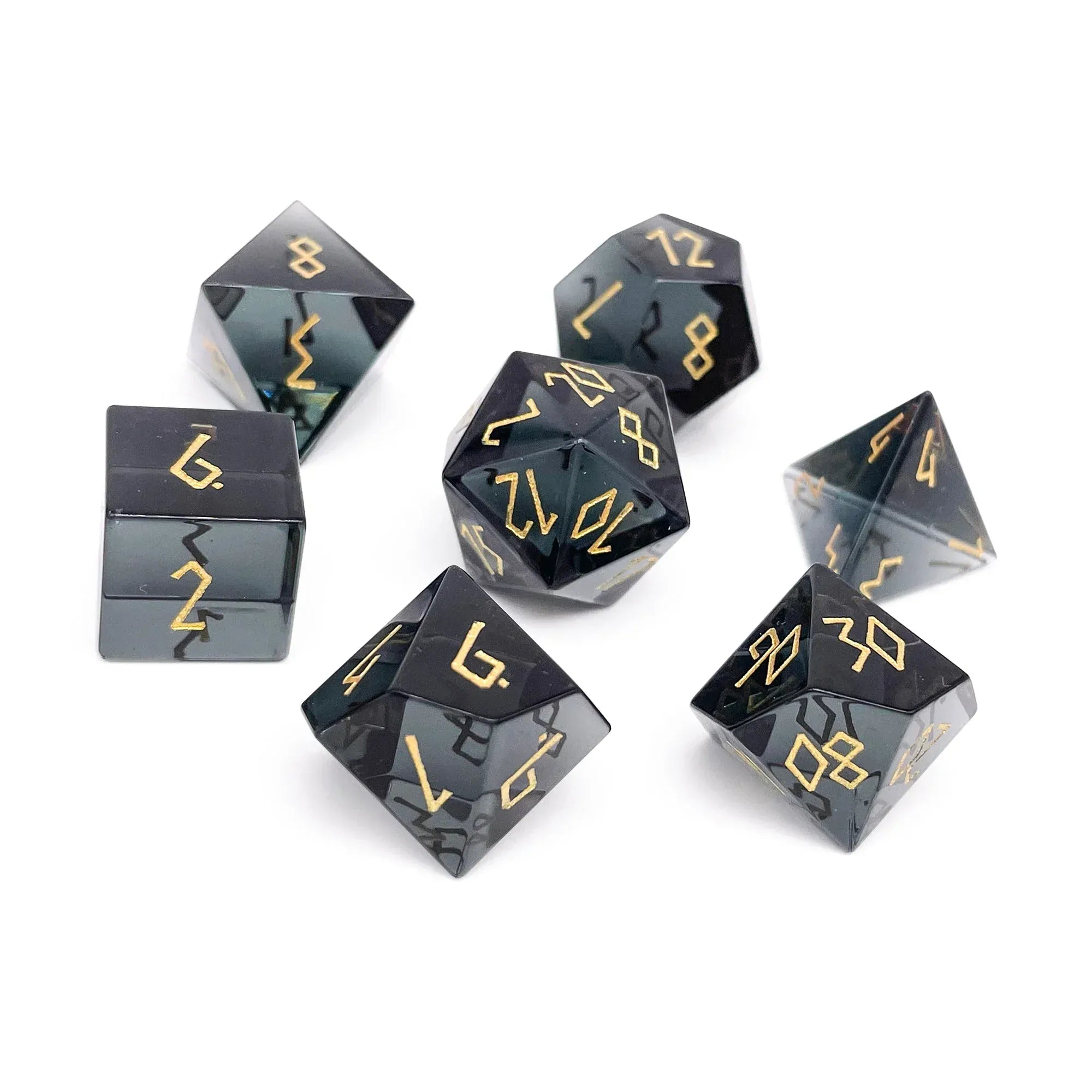 Introducing the Zircon Glass Smoke. A 7-Piece RPG Set, a captivating fusion of mystery and elegance that will redefine your tabletop gaming experience. Crafted with meticulous attention to detail, these Zircon Glass Dice are more than just gaming tools—they are portals to a world of imagination, where each roll weaves a tale and every adventure is a masterpiece waiting to unfold.