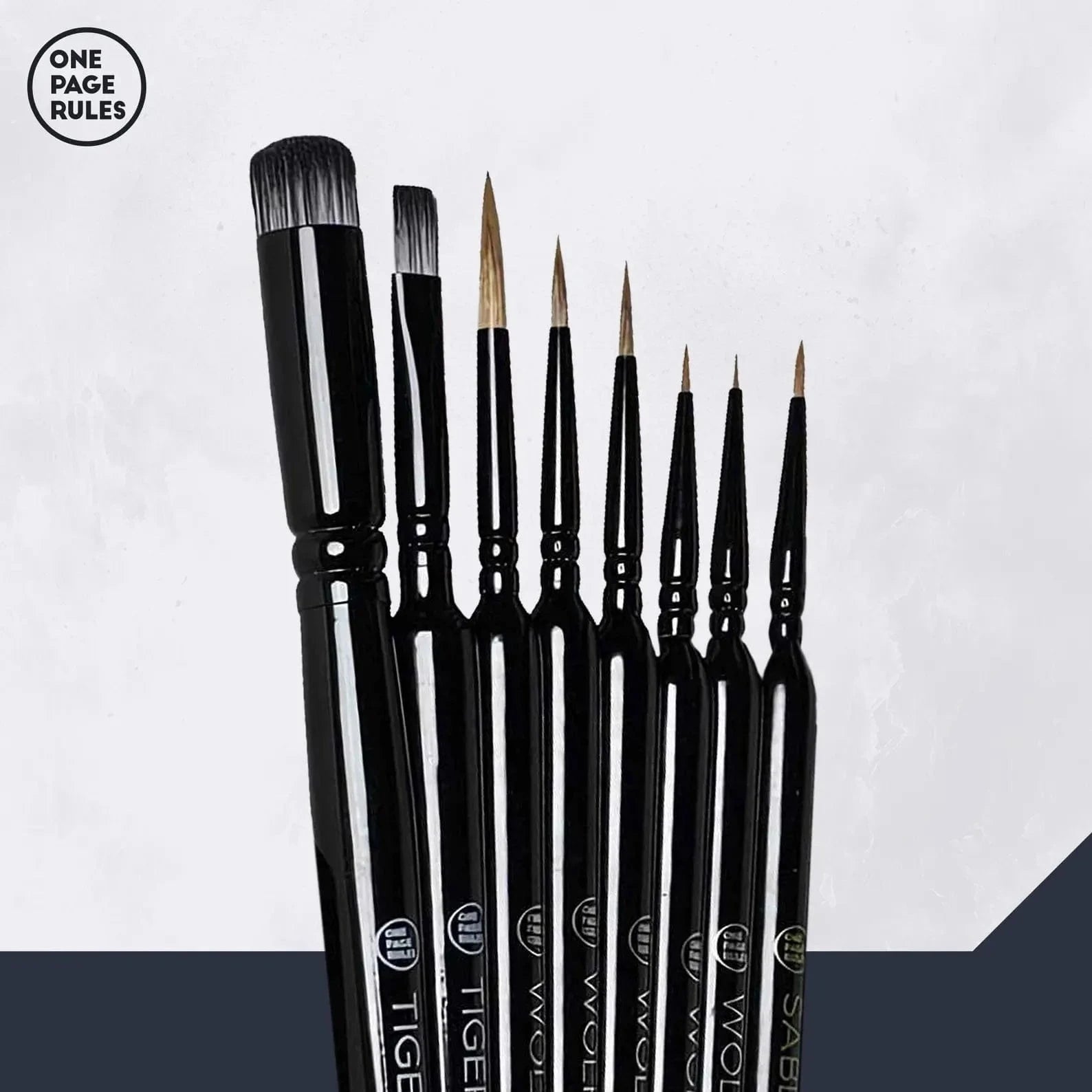 Includes 8 brushes, hand-picked to give you a combination of 5 reliable Wolf-Bristle brushes for your everyday layering, a Kolinsky Sable detail brush, and 2 Techlon Dry Brushes - everything you need to paint your next army (or their Skirmish Starter Set!). Also includes a care guide and access to tutorials, 3D printable miniatures, and more!