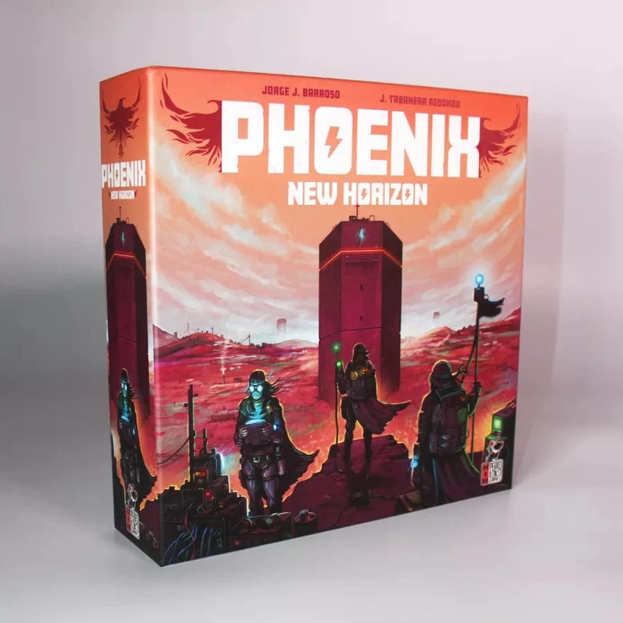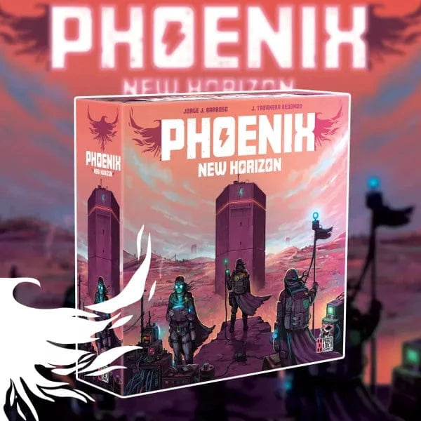 Phoenix New Horizon is a Euro-style board game in which players assume control of a team of commandos tasked with the mission of recolonizing Earth. Throughout the game's four rounds, players accumulate victory points by constructing regenerators and buildings, bolstering the planet's population, and achieving diverse objectives that vary between playthroughs.