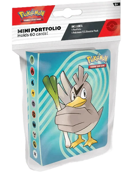 Store up to 60 of your latest and greatest Pokémon cards in this mini portfolio. Each portfolio comes with a Pokémon TCG booster pack, so you can start filling it up right away!