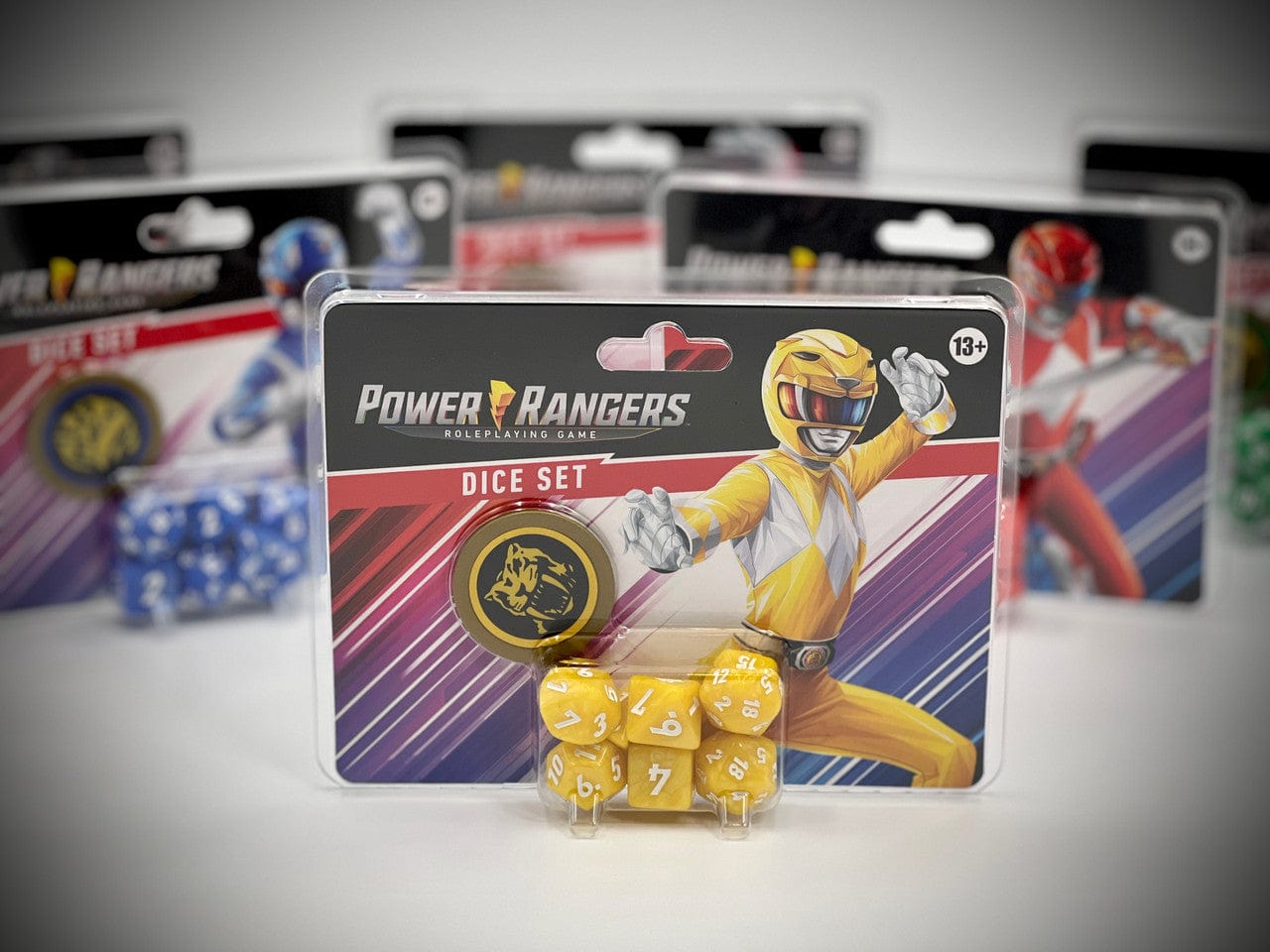 - 8-piece custom dice set for us with the Power Rangers Roleplaying Game