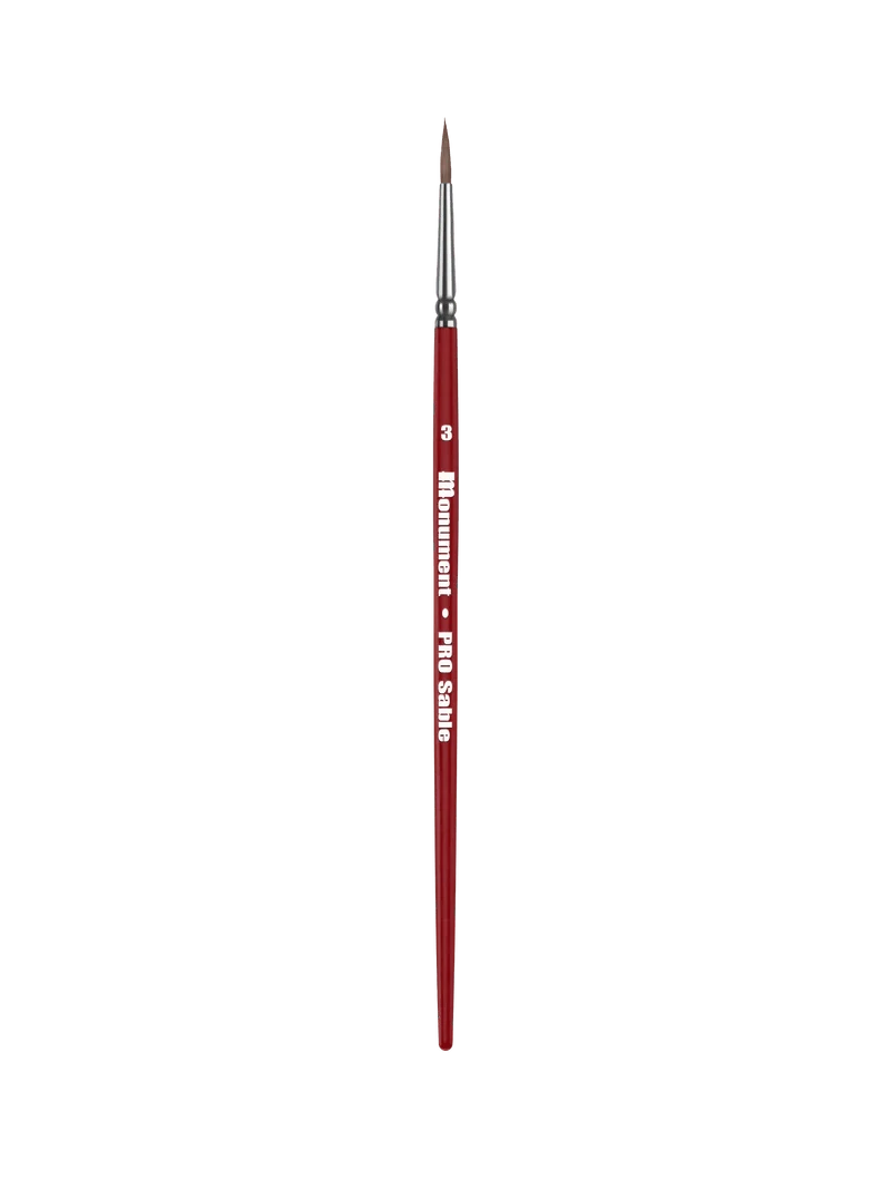 The next generation of Monument brushes is here! Our PRO Sables are made from the finest Sable and designed with a shape that will load a sizable amount of paint, while delivering perfect control with every stroke. Great “snap” and very fine points to put the finishing details on your models. Great for use with acrylics as well as other thin mediums, PRO Sables will allow you to blend easily and create the finest details at any scale.