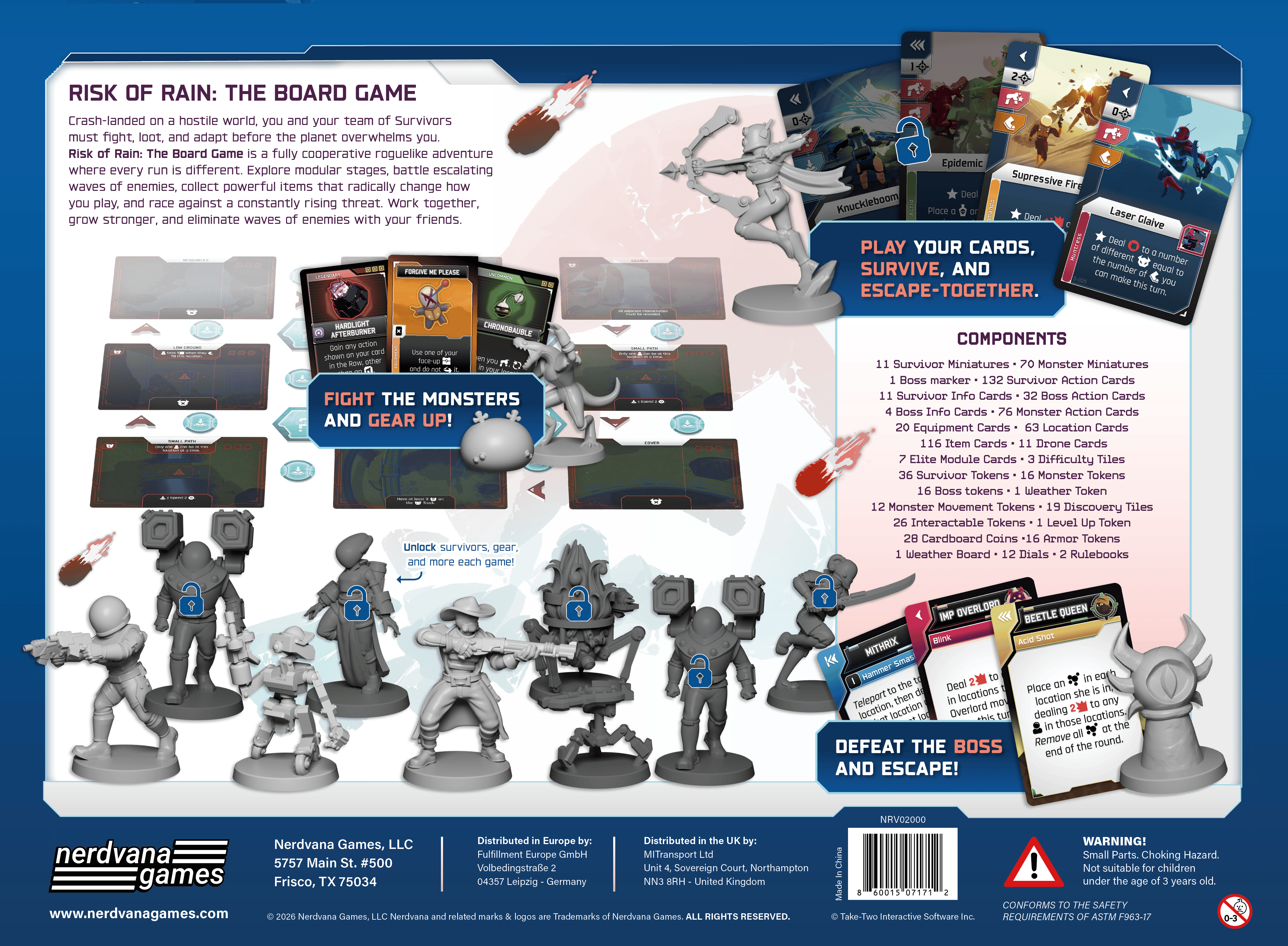 Risk of Rain: The Board Game is a cooperative roguelike adventure set on the deadly planet of Petrichor V.