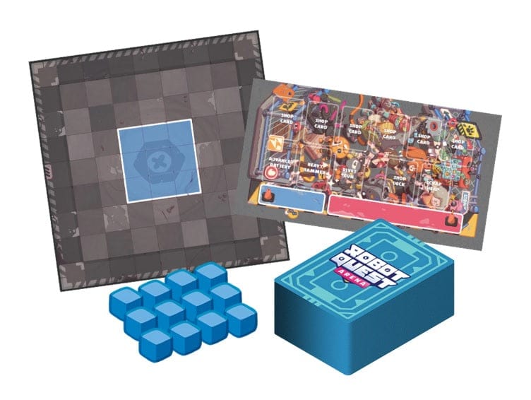 The Big Arena Pack includes: a double-sided player board with one side accommodating up to 4 players on the 7x7 Arena, and the other 5+ players on the huge 9x9 Arena. Also includes additional starting deck cards, cubs, and double-sided shop board.