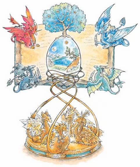 The characters are travelers in a world without classical fantasy wizards and warriors. Instead, the characters are minstrels, merchants, healers, hunters, artisans, farmers and nobles who decide (or were fated) to leave their towns and explore the world. Using a light rules system based on polyhedral dice where the randomness in results leads to more story development, Ryuutama provides a framework for travel-focused stories fun for adults and enjoyable for all ages.